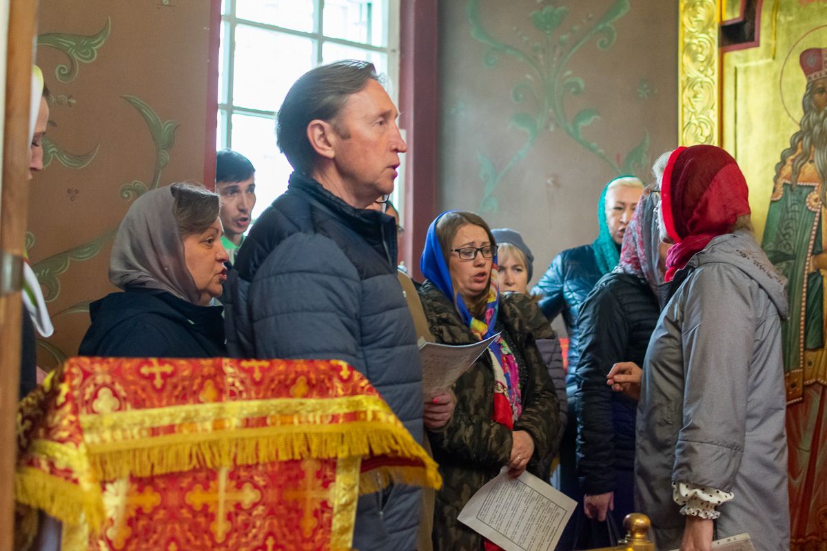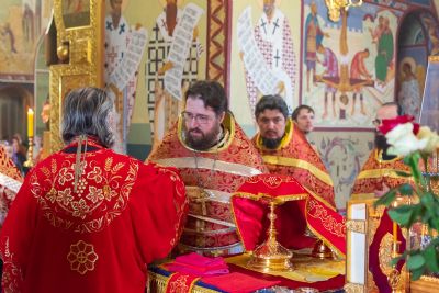 Его Высокопреосвященству сослужили секретарь Йошкар-Олинского епархиального управления иеромонах Серафим Пасанаев, благочинный Йошкар-Олинского церковного округа протоиерей Андрей Норкин, настоятель Вознесенского собора митрофорный протоиерей Евгений Кутырев, протодиакон Михаил Козловский и клирики Вознесенского собора. Пел хор собора под управлением Ангелины Бабиной.
