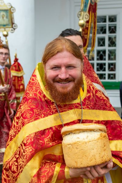 По окончании Литургии прошел Пасхальный крестный ход вокруг собора с чтением Евангелия и кроплением святой водой.
