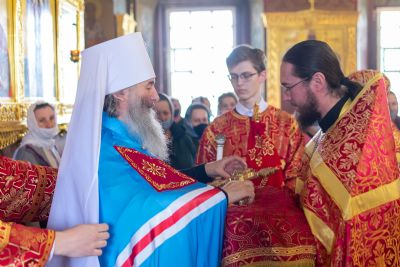 Митрополит Иоанн в понедельник Светлой седмицы совершил Литургию в Вознесенском соборе 3378