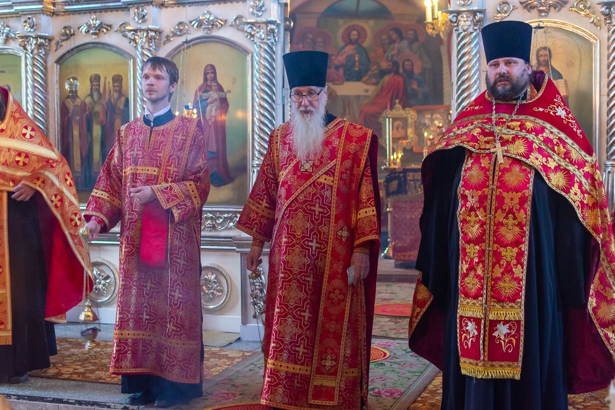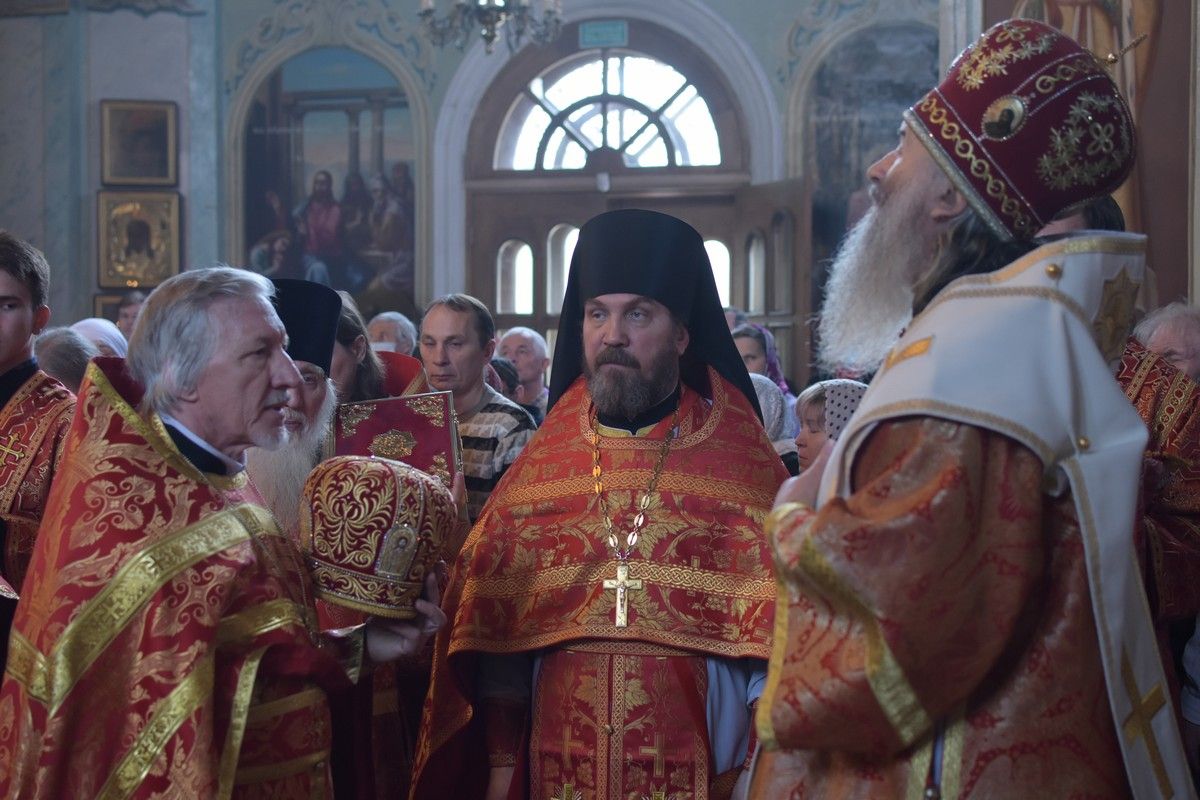 Архипастырю сослужили: секретарь Йошкар-Олинского епархиального управления иеромонах Серафим (Пасанаев), настоятель Смоленского собора иерей Алексий Евсеев, благочинный Горномарийского округа настоятель Свято-Троицкого храма протоиерей Алексий Сущев и духовенство Йошкар-Олинской епархии.