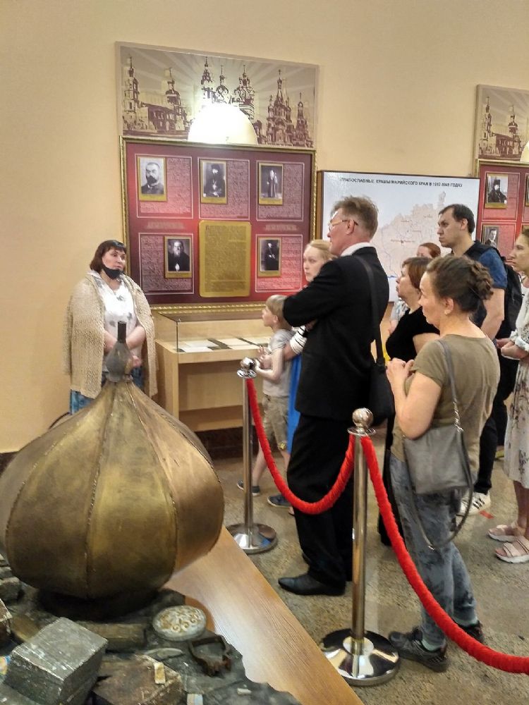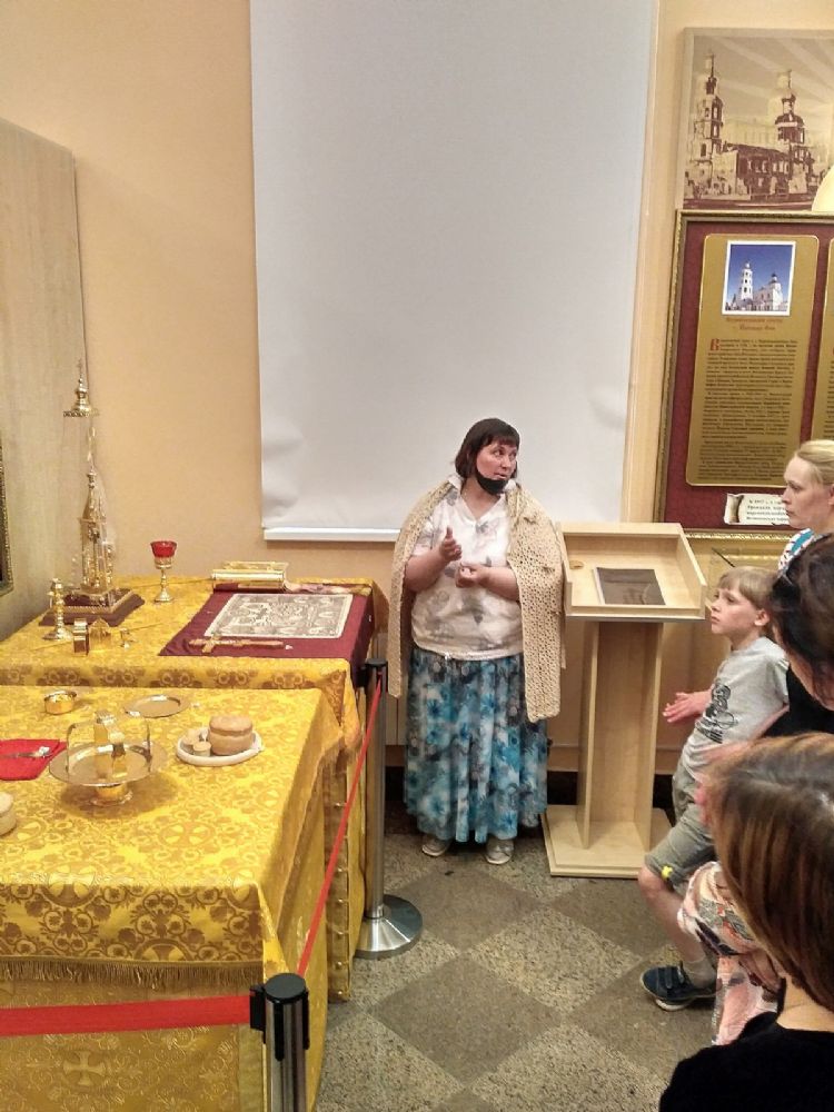 После концерта сотрудник музея Светлана Каплунова провела для собравшихся увлекательную экскурсию по экспозиции музея – рассказала о том, как связаны с Марийским краем святые Сергий Радонежский, Макарий Желтоводский и Гурий Казанский; о чудесном явлении иконы Божией Матери «Мироносицкая»; о монастырях и храмах, существовавших до революции на Марийской земле; о тяжелом времени гонений на Церковь и последующем возрождении храмов. Также посетители узнали о главном таинстве Церкви – Евхаристии, и смогли увидеть воочию то, что обычно бывает скрыто от прихожан за алтарной стеной – Престол и жертвенник со всеми богослужебными предметами…