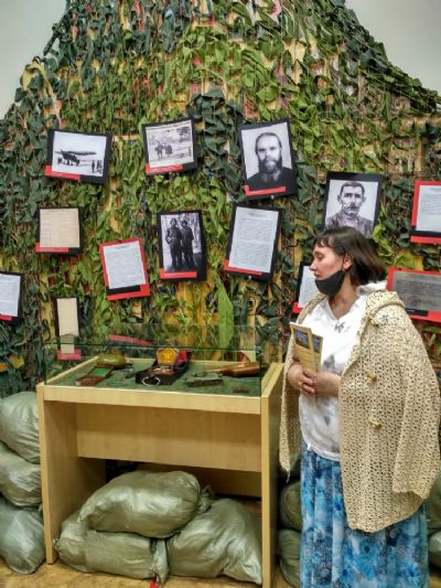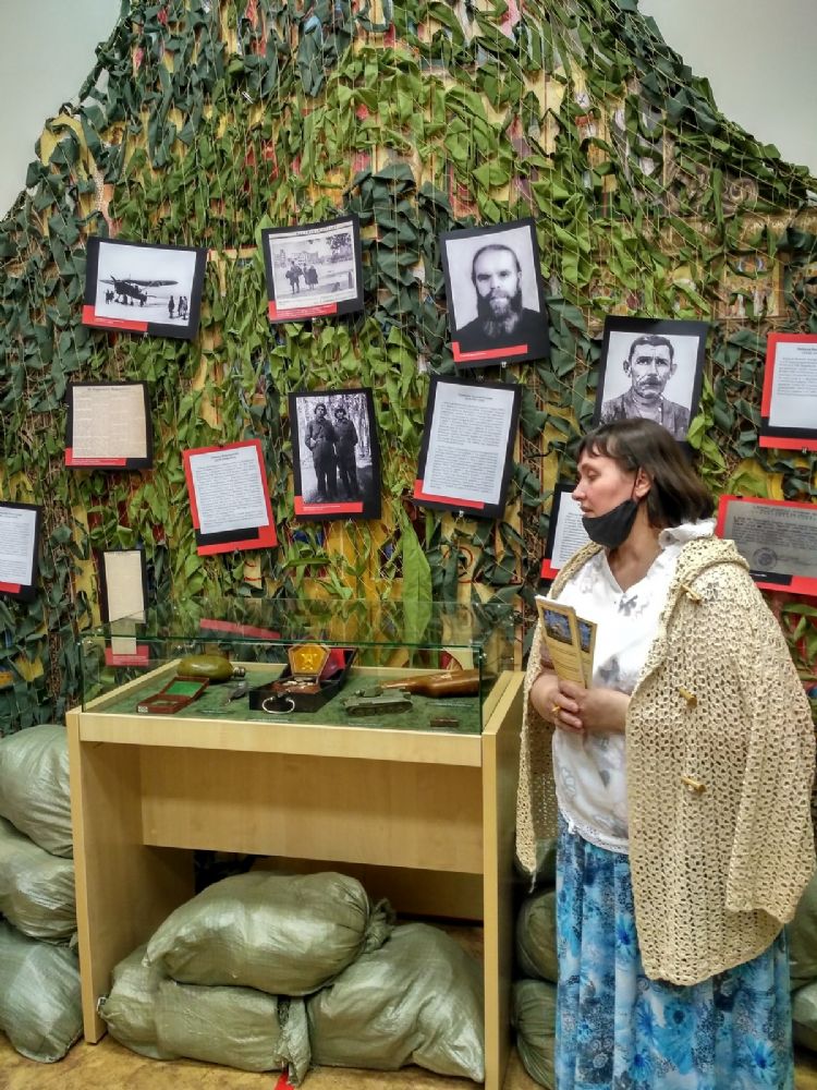 Также Светлана Константиновна провела экскурсию по выставке «Крест под шинелью» – о верующих Марийского края на фронтах Великой Отечественной войны. Многие из них пришли к вере именно в горниле войны, а вернувшись с фронта, много потрудились на благо Церкви: кто-то стал монахом, кто-то священником, кто-то старостой храма…