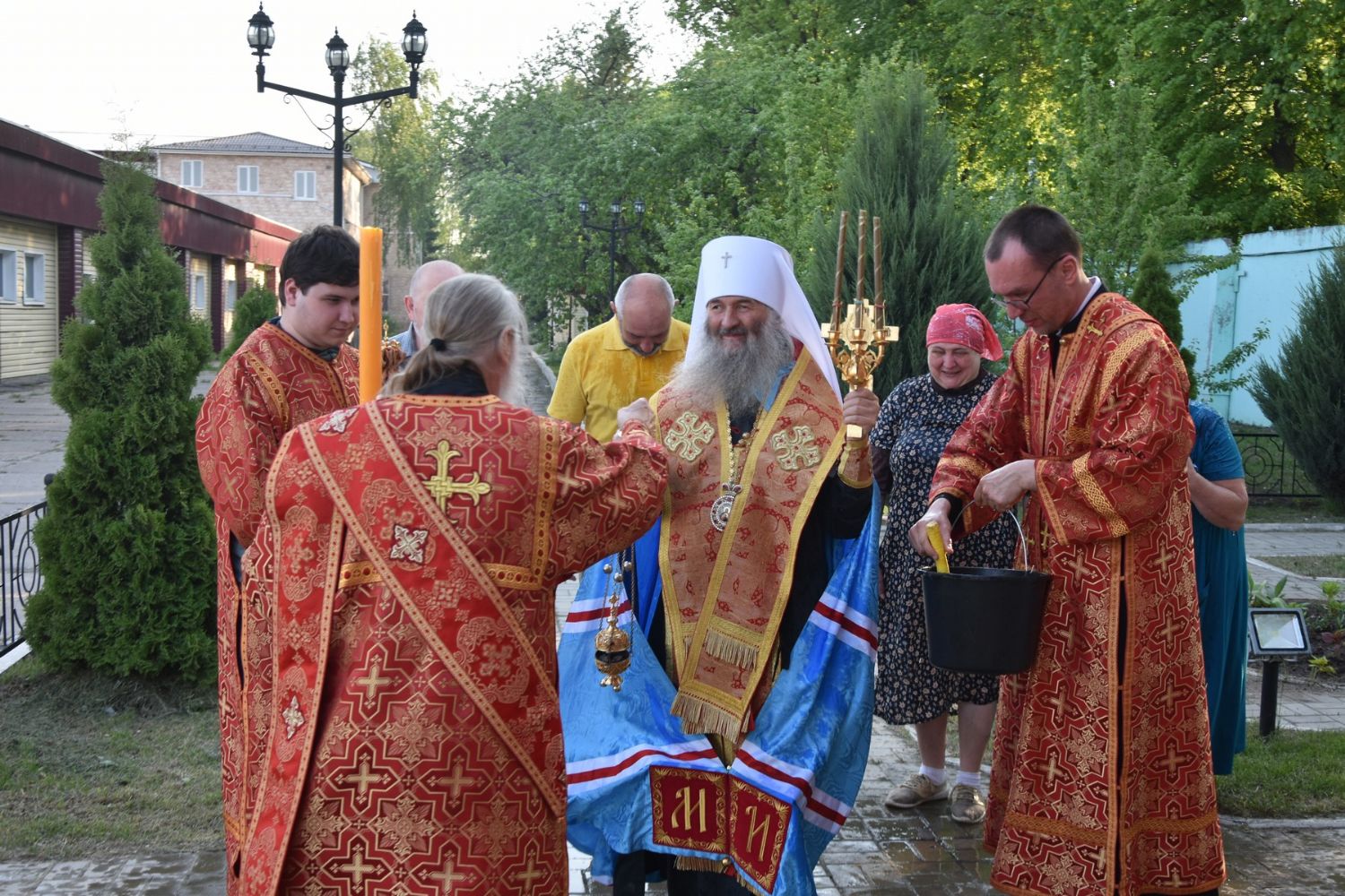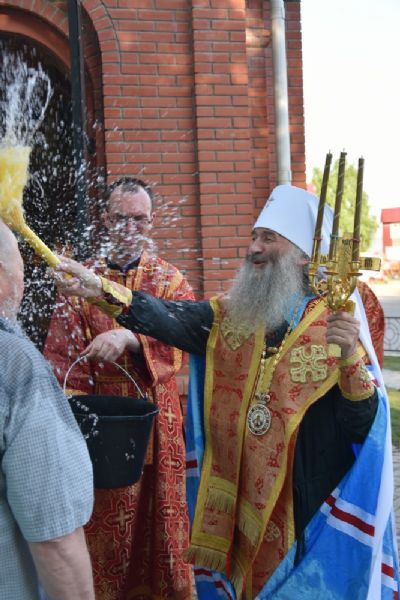 После молебна прошел крестный ход вокруг часовни со чтением Евангелия и кроплением святой водой. Затем митрополит Иоанн обратился к собравшимся с архипастырским словом: