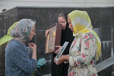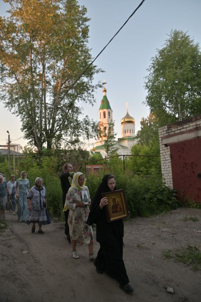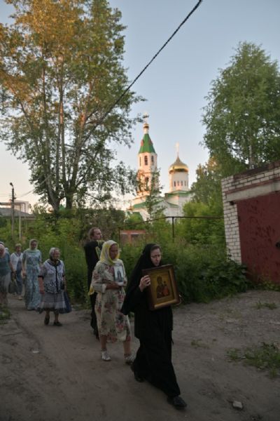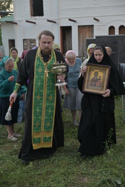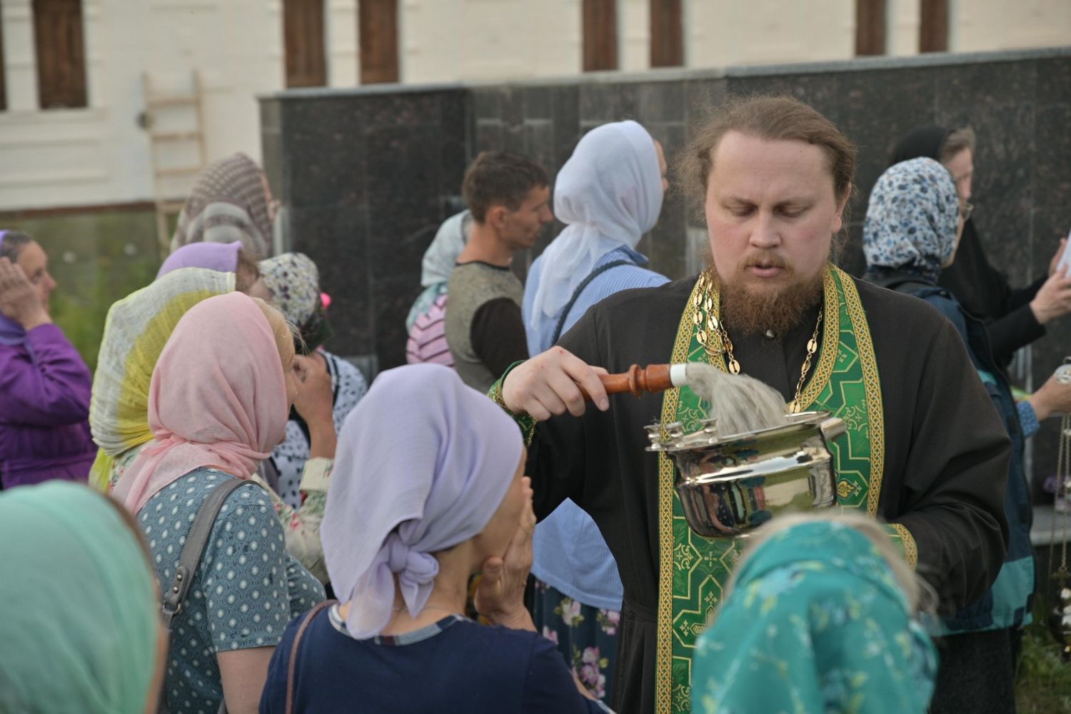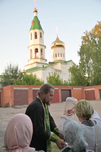 После молебна верующие обошли крестным ходом вокруг храма, отец Константин окропил территорию и постройки святой водой.