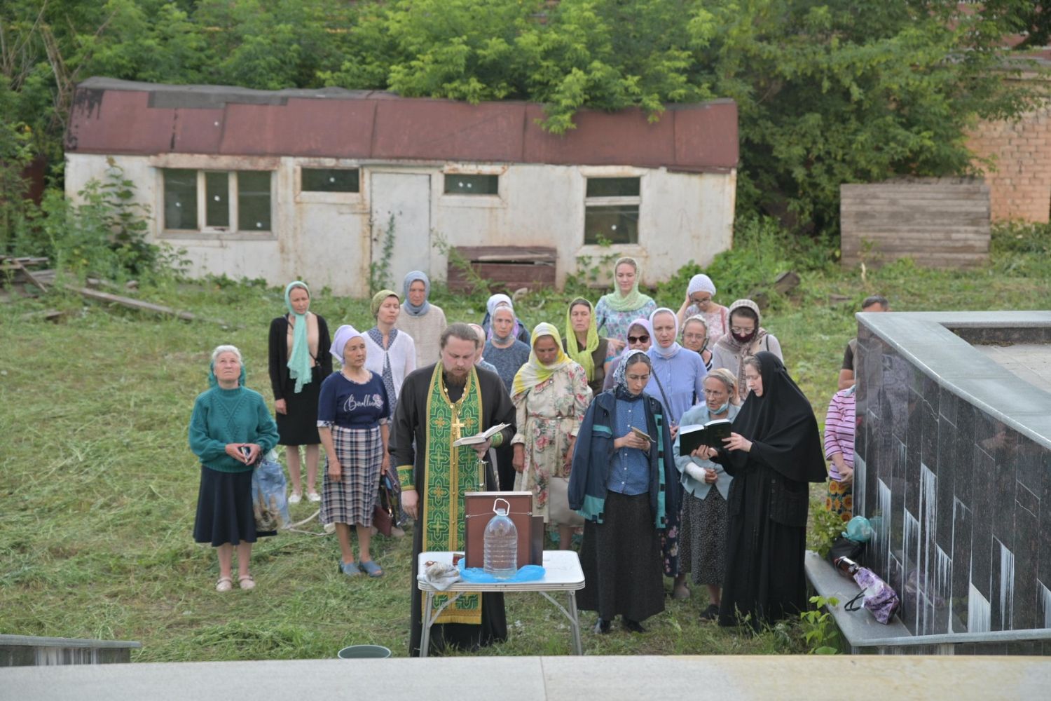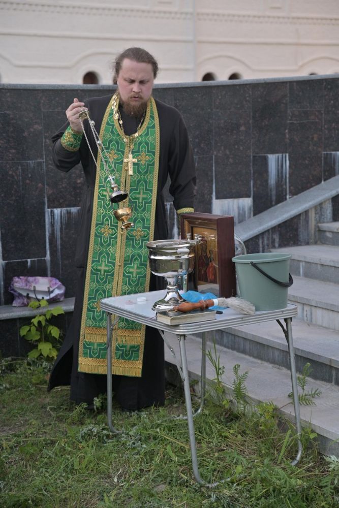 19 июня вечером, накануне праздника Пресвятой Троицы, на территории строящегося в г. Йошкар-Оле храма в честь Входа Господня в Иерусалим был совершен водосвятный молебен.