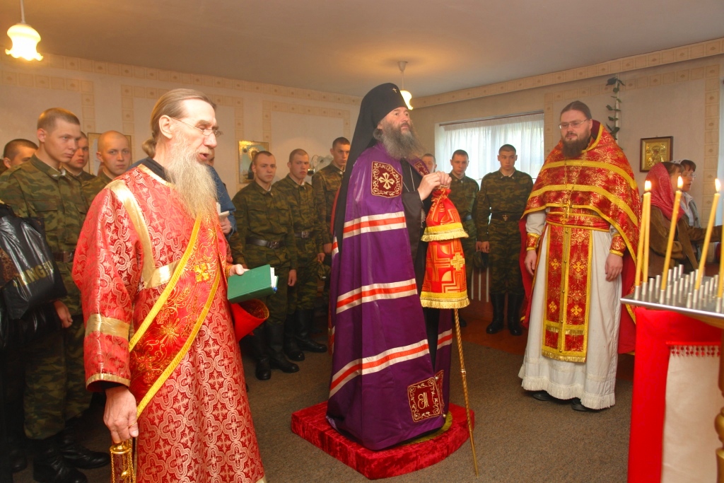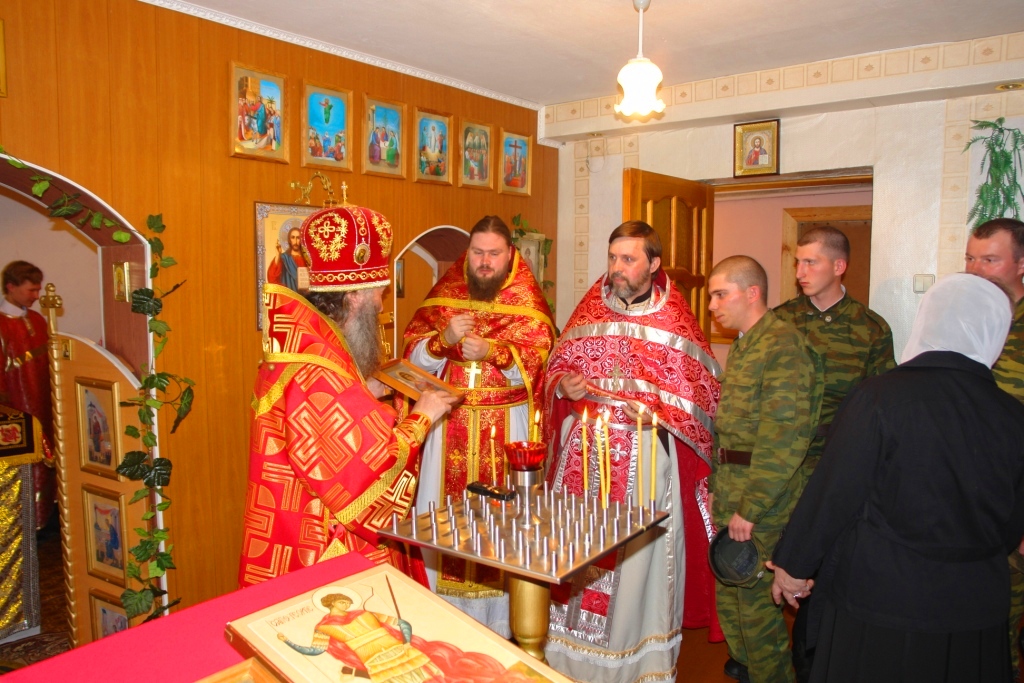 В богослужении приняли участие солдаты-срочники и часть офицерского состава дивизии. Многие служащие причастились святых Христовых Таин. Владыка обратился к собравшимся с напутственным словом и преподнес небольшие подарки – иконки Христа Спасителя и Божией Матери. После Богослужения состоялась встреча Архипастыря и офицерского состава дивизии с ветеранами Великой Отечественной войны.