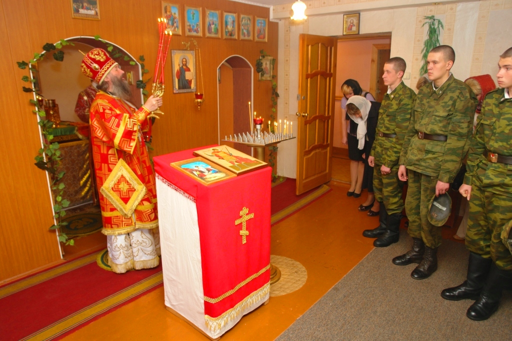 Сегодня, в день памяти святого великомученика Георгия Победоносца, архиепископ Йошкар-Олинский и Марийский Иоанн совершил Божественную литургию в Георгиевском храме, расположенном в одной из частей 10-ой ракетной дивизии г. Йошкар-Олы.