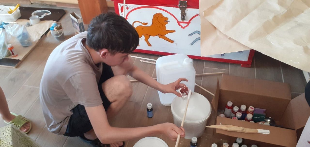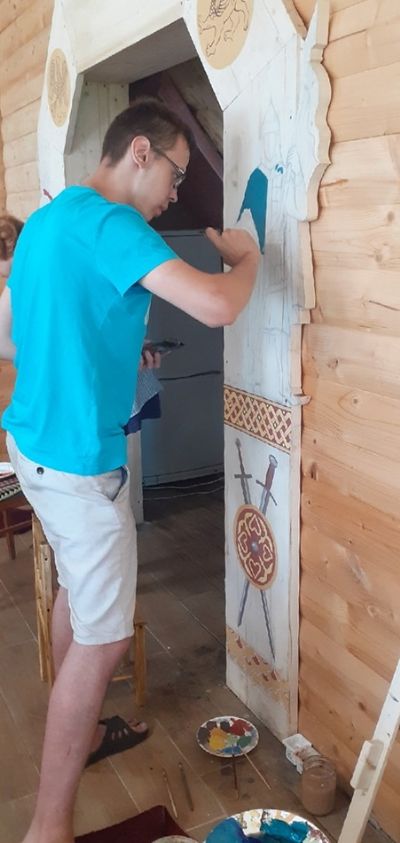 Руководство училища поддержало инициативу ребят – и на летнюю практику отправились 13 студентов во главе с преподавателем Надеждой Москвичевой. Заблаговременно они разработали эскизы, которые по прибытию на заставу утвердил отец Сергий. Батюшка разместил практикантов на проживание в воскресной школе, а также определил им фронт работ – роспись терема, в котором проходят встречи с интересными людьми, лекции и мастер-классы, здесь же находится трапезная.