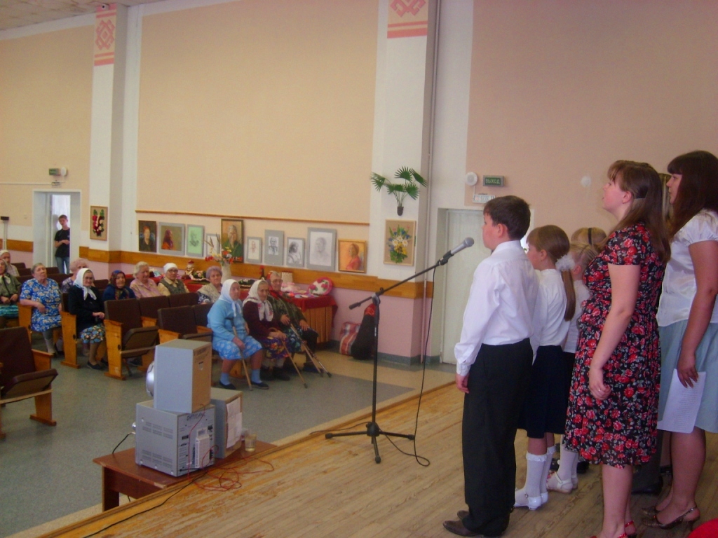 С этим же концертом через день, 10 мая, ребята выступили в Доме престарелых. Это уже не первое выступление, поэтому и сцена была знакома, и ветераны тепло встречали знакомых ребят. Атмосфера была доброжелательной и праздничной.