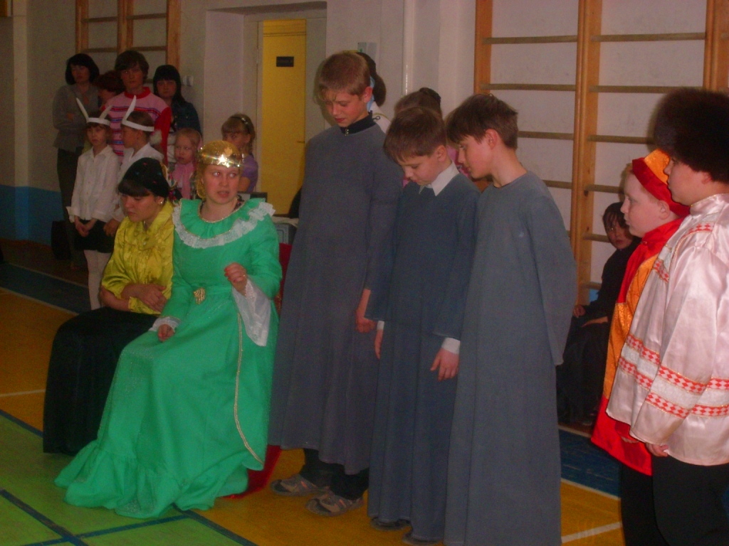 С большим интересом маленькие зрители посмотрели инсценировку по произведению Лескова «Час воли Божией» и концерт, который ребята из Воскресной школы подготовили к 65-летию Великой Победы. Дети горячо приветствовали юных артистов. Некоторые известные песни ребята подпевали или даже пеливсе вместе.