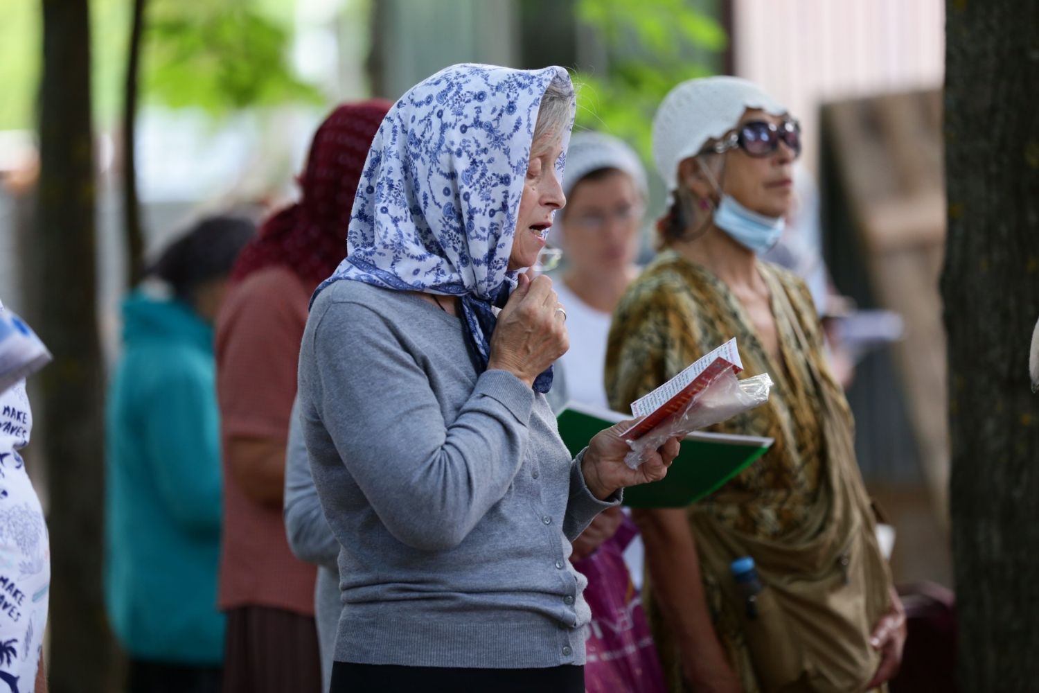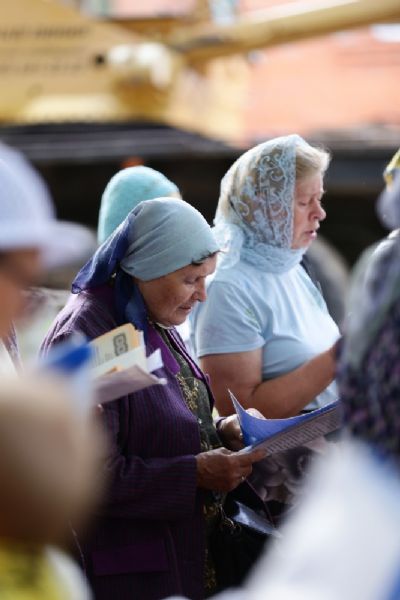 Акафист Богородице («Радуйся, Невесто Неневестная») пели хором все молящиеся. Будущие прихожане уже сейчас в большом количестве посещают богослужения, которые пока проходят рядом со строящимся храмом. Они вкладывают неоценимую лепту в строительство храма в их родном районе города – молитву.