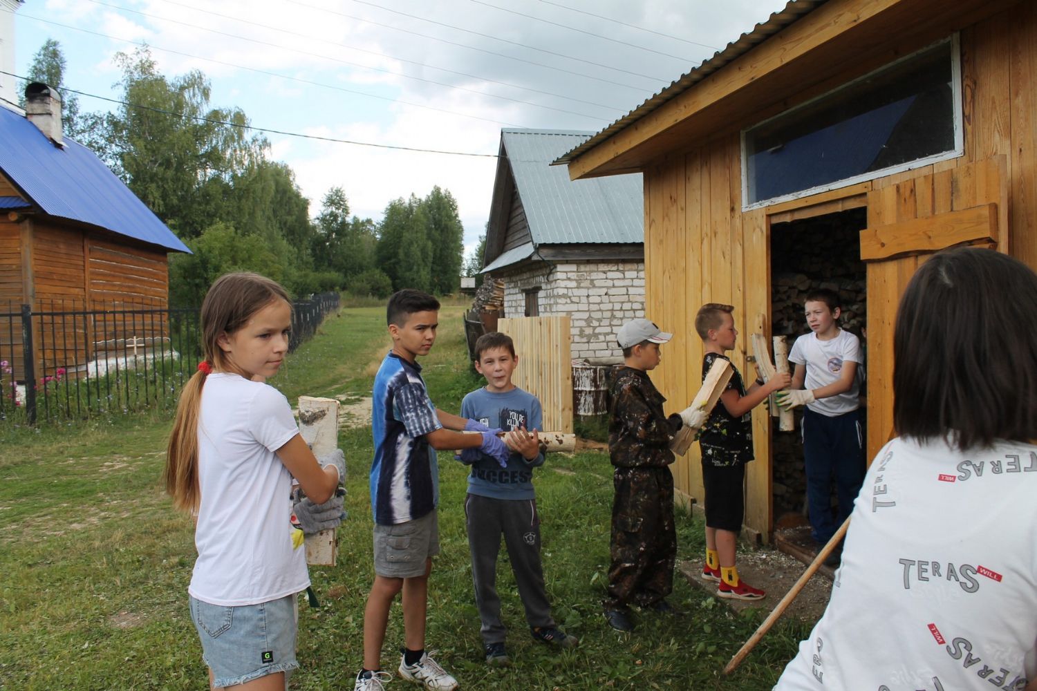 И, конечно, помимо развлечений и познавательных игр, ребята выполняли различные послушания. Это и дежурство в трапезной, уборка в своих комнатах, клиросное и алтарное послушание в храме, звонарское послушание на колокольне. Девочки вместе со взрослыми готовили вкусные обеды, а еды нужно было приготовить много. Помимо этого, дети заготовили большое количество дров и сложили их в дровянике. На это ушло ровно два дня, объем работы оказался значительным, но для большого количества ребятишек оказался не утомительным. В другой день взрослые мальчишки и девчонки заготовили больше ста пар березовых веников, а малыши тем временем на поле собирали целебные травы. Кому-то досталось послушание в саду: необходимо было собрать смородину и прополоть траву на грядках. Занимательным послушанием в этом году была покраска церковного забора.