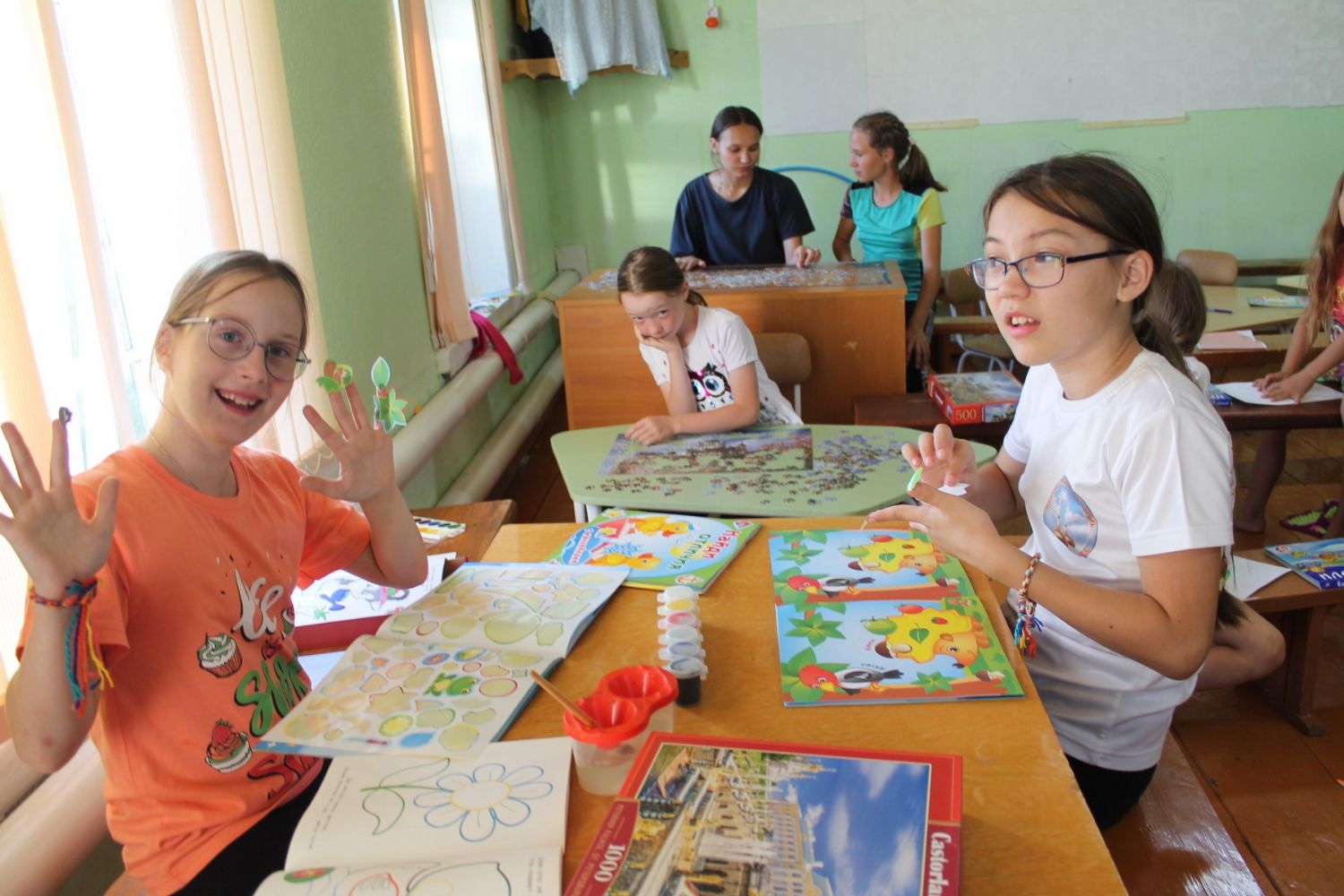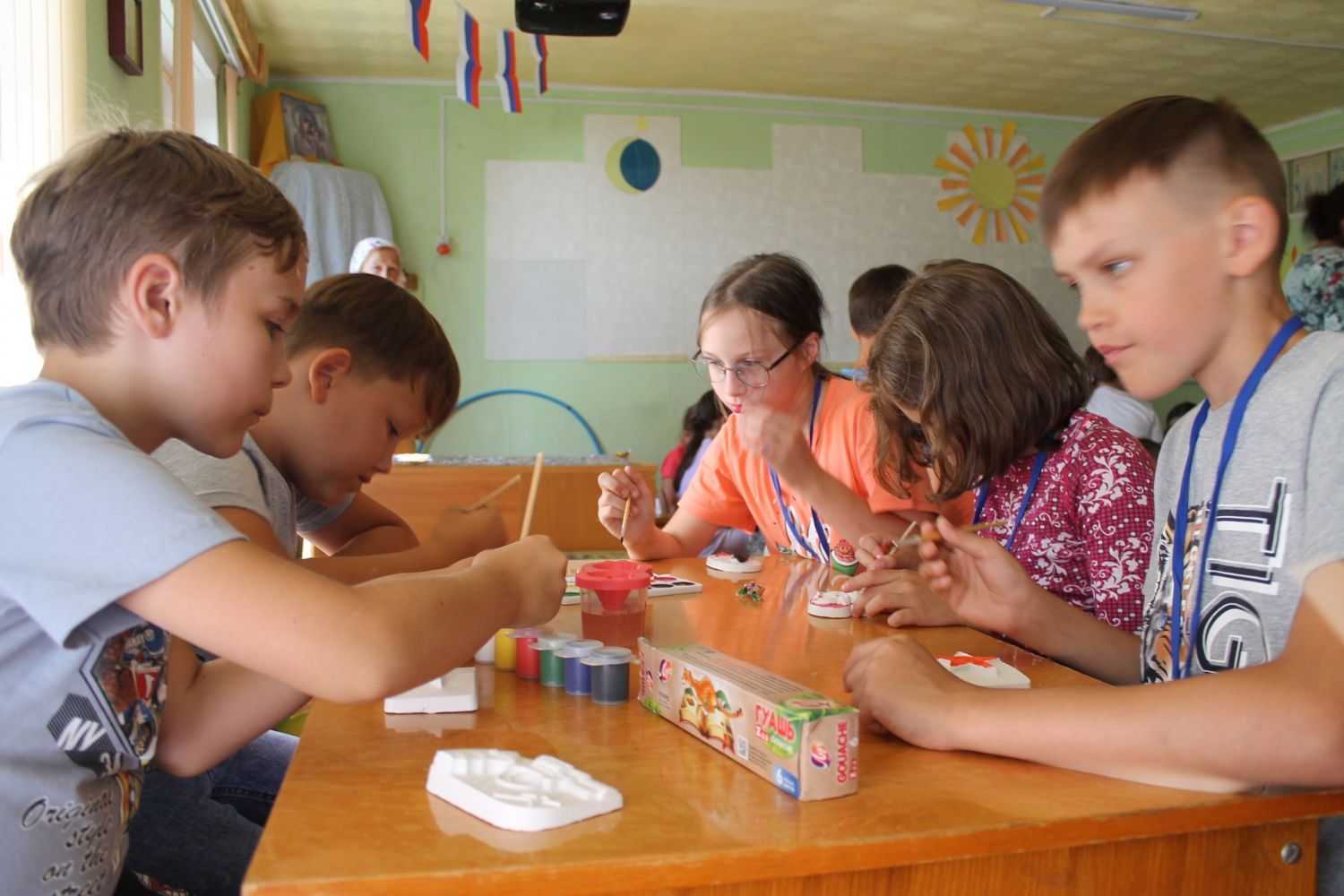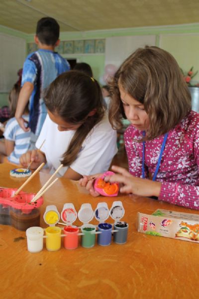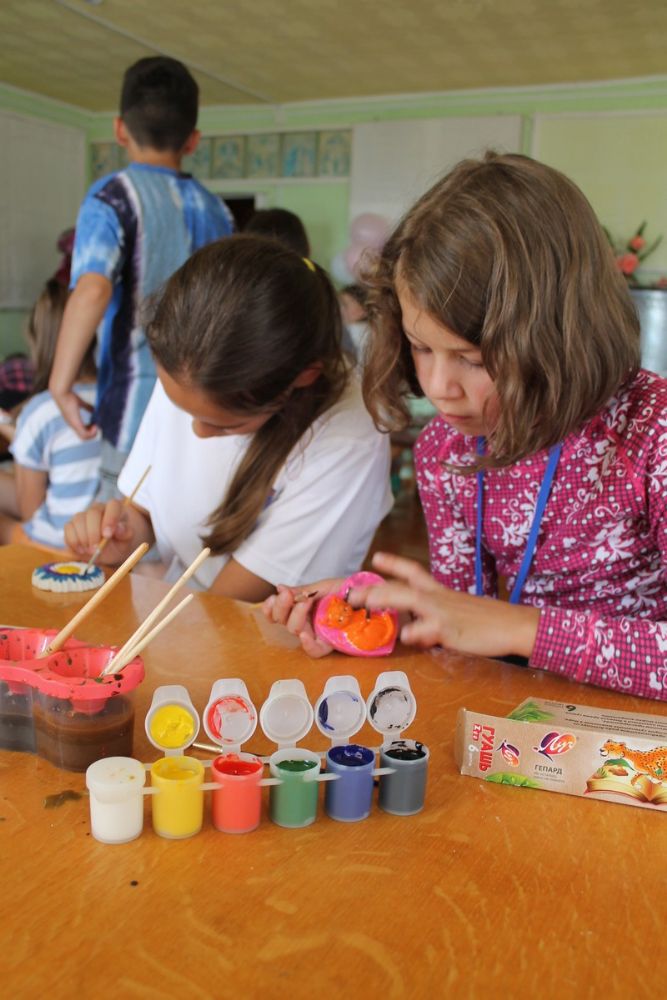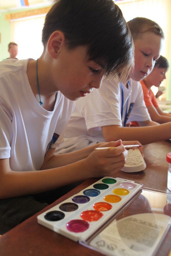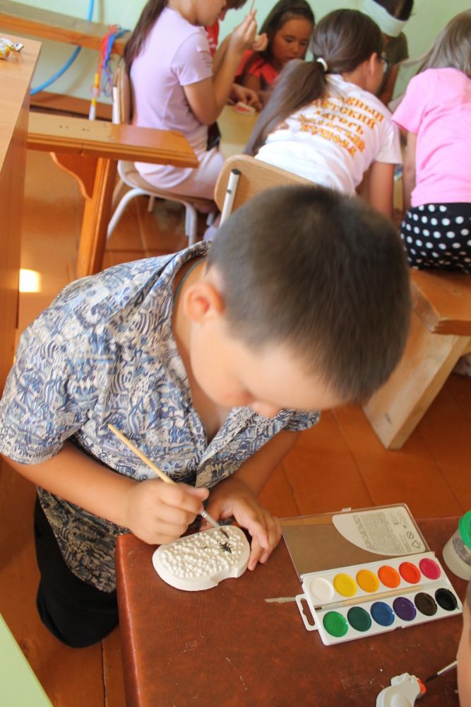 Команда воспитателей и педагогов – тоже талантливые, активные, заводные и в меру добрые, а где нужно и строгие – приготовили для ребят насыщенную, хорошо продуманную развлекательную и образовательную программу: подвижные игры на работу в команде и координацию, на воспитание взаимопомощи и взаимовыручки, занятия по познанию себя и своих товарищей. Психолог в течение смены провел ряд мастер-классов, на одном из которых дети с большим интересом освоили технику рисования по гипсовым фигуркам.