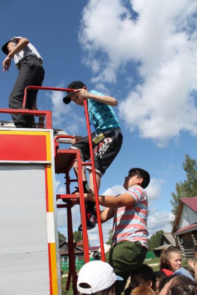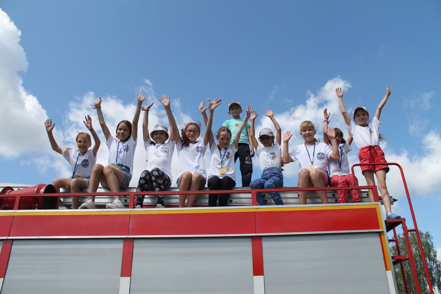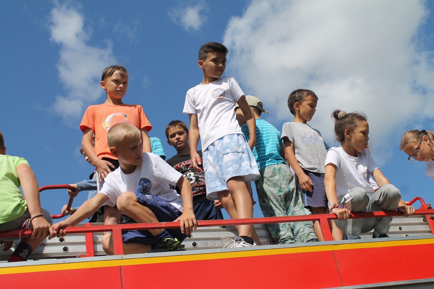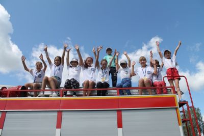 Очень понравился ребятам день МЧС – на стадион приехали спасатели с целой пожарной машиной спасательного инвентаря. Пожарные продемонстрировали «сбор по тревоге»: за 30 секунд огнеборцы уже были готовы к выезду на условный пожар. Затем они рассказали об устройстве и работе пожарной машины и о правилах поведения в экстренных ситуациях. Демонстрируя мощность пожарной машины, спасатели струей воды на дальнем расстоянии сбивали футбольный мяч. Дети с радостью попробовали себя в качестве пожарных, примерили огнезащитные каски и сделали фото на память.