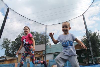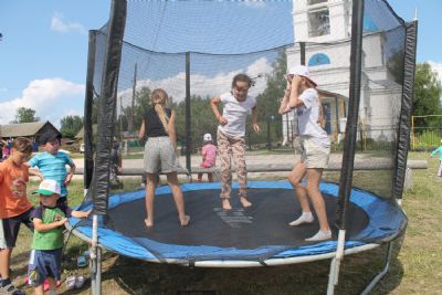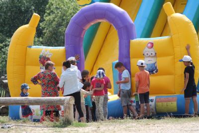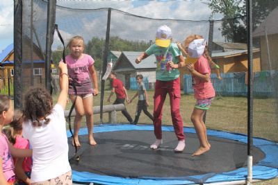 В один из дней для детей были организованы аттракционы: надувная горка и батут –каждый имел возможность напрыгаться и накататься на год вперед.