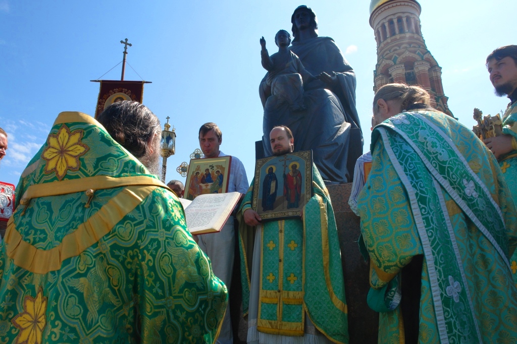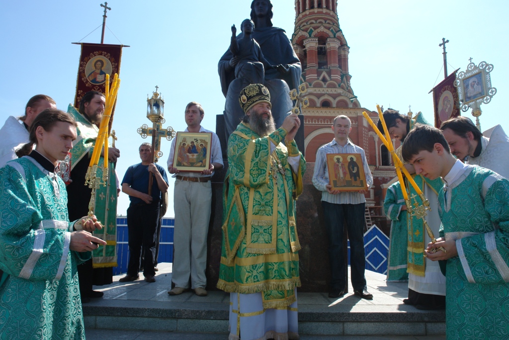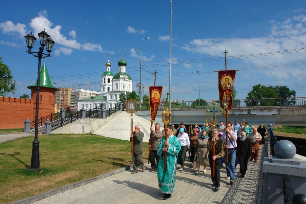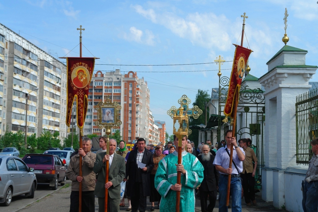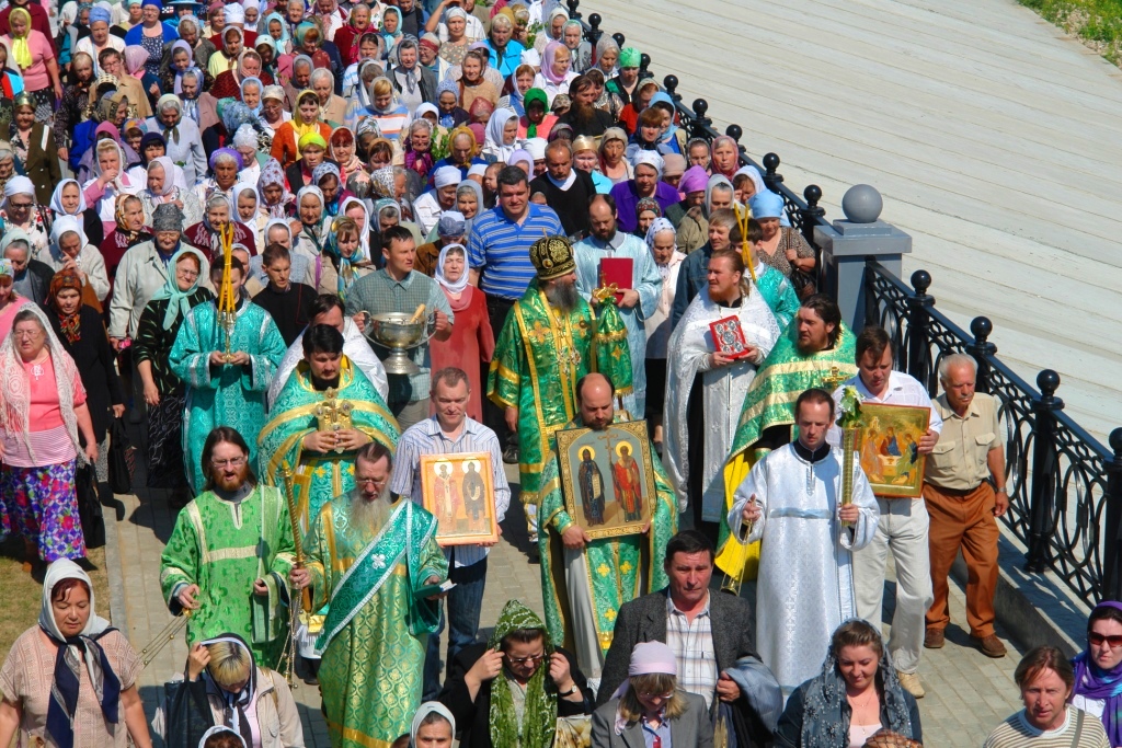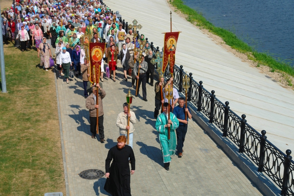 Завершил богослужение традиционный крестный ход, который проходит ежегодно, только несколько изменяя маршрут. Начав свое движение от Вознесенского собора по набережной священство и миряне во главе с Владыкой дошли до строящегося Благовещенского собора, после чего крестный ход направился обратно. Были совершенны остановки у Воскресенского собора и Троицкого храма.