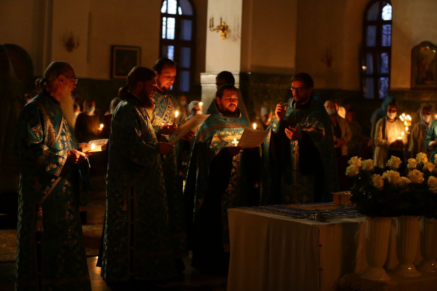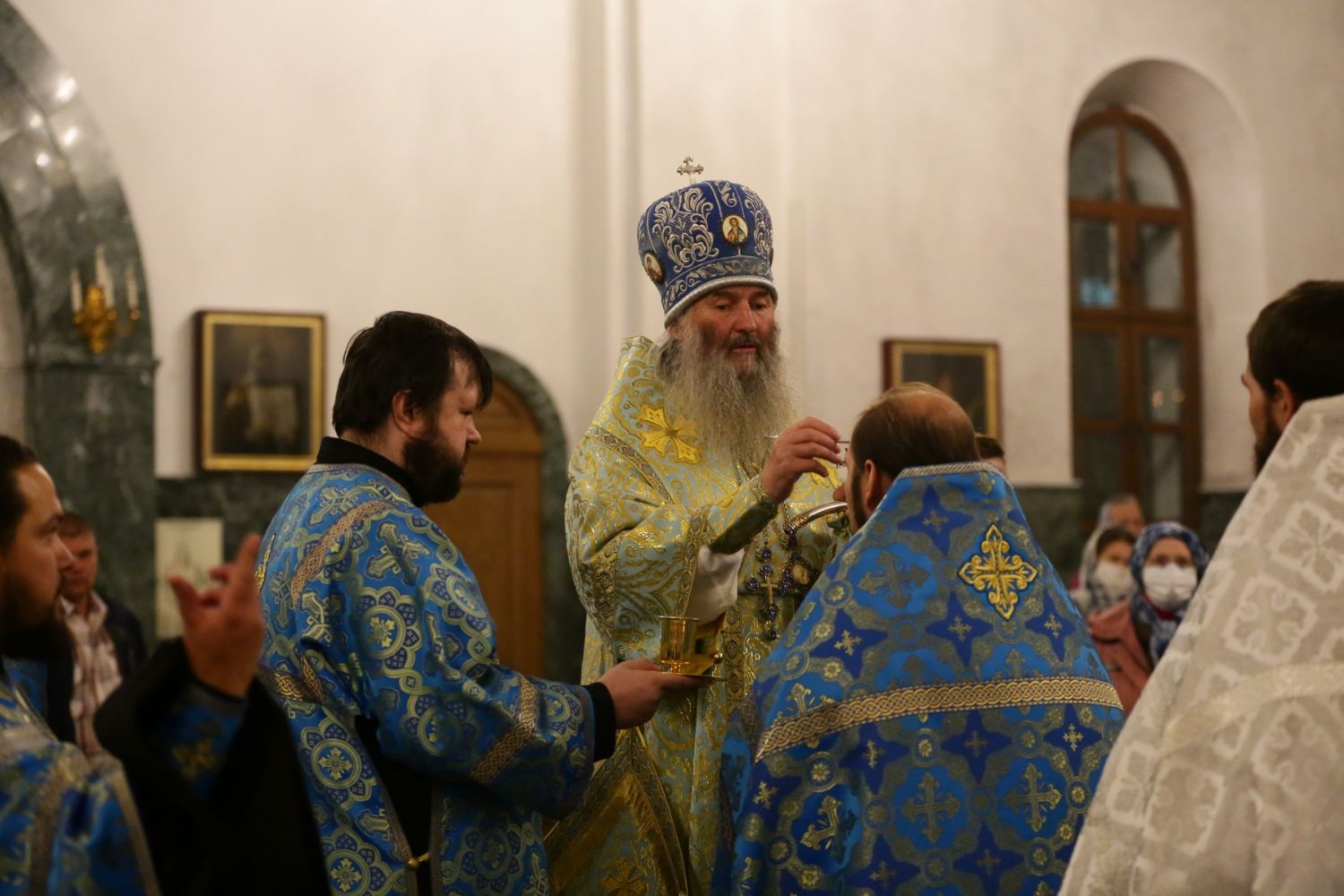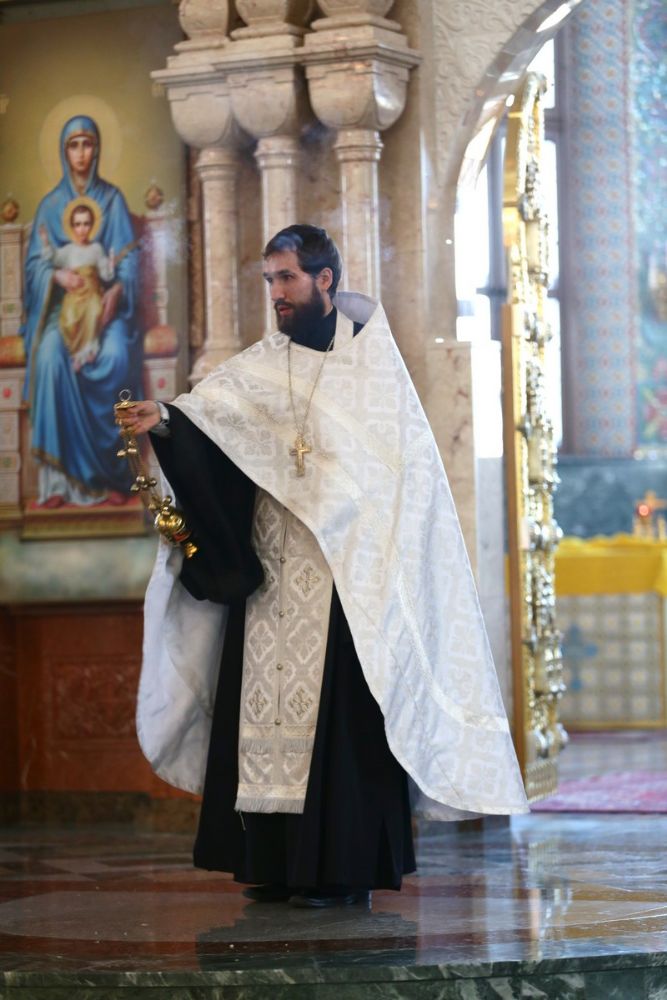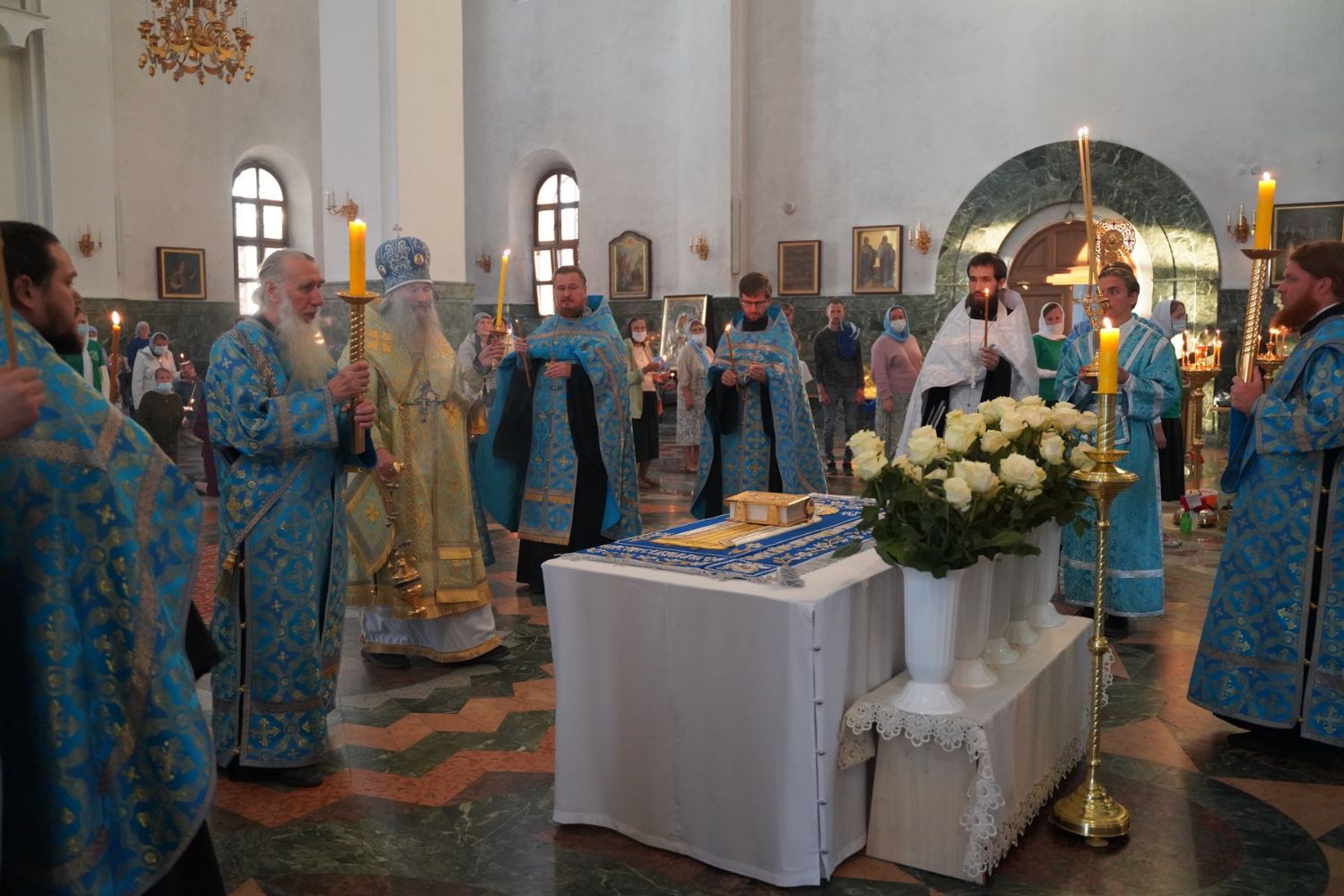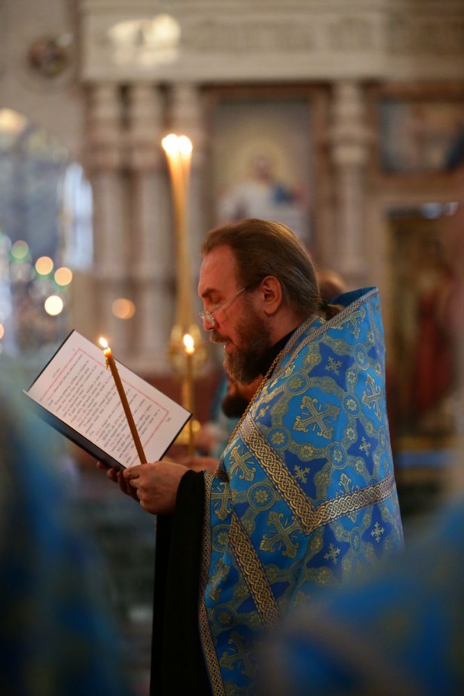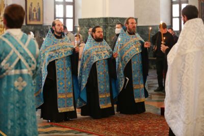 Владыке сослужили секретарь Йошкар-Олинского епархиального управления иеромонах Серафим (Пасанаев), ключарь собора протоиерей Сергий Поглазов, клирики собора и протодиакон Михаил Козловский. Песнопения исполнял хор «Благовест» под руководством регента Надежды Поздеевой.