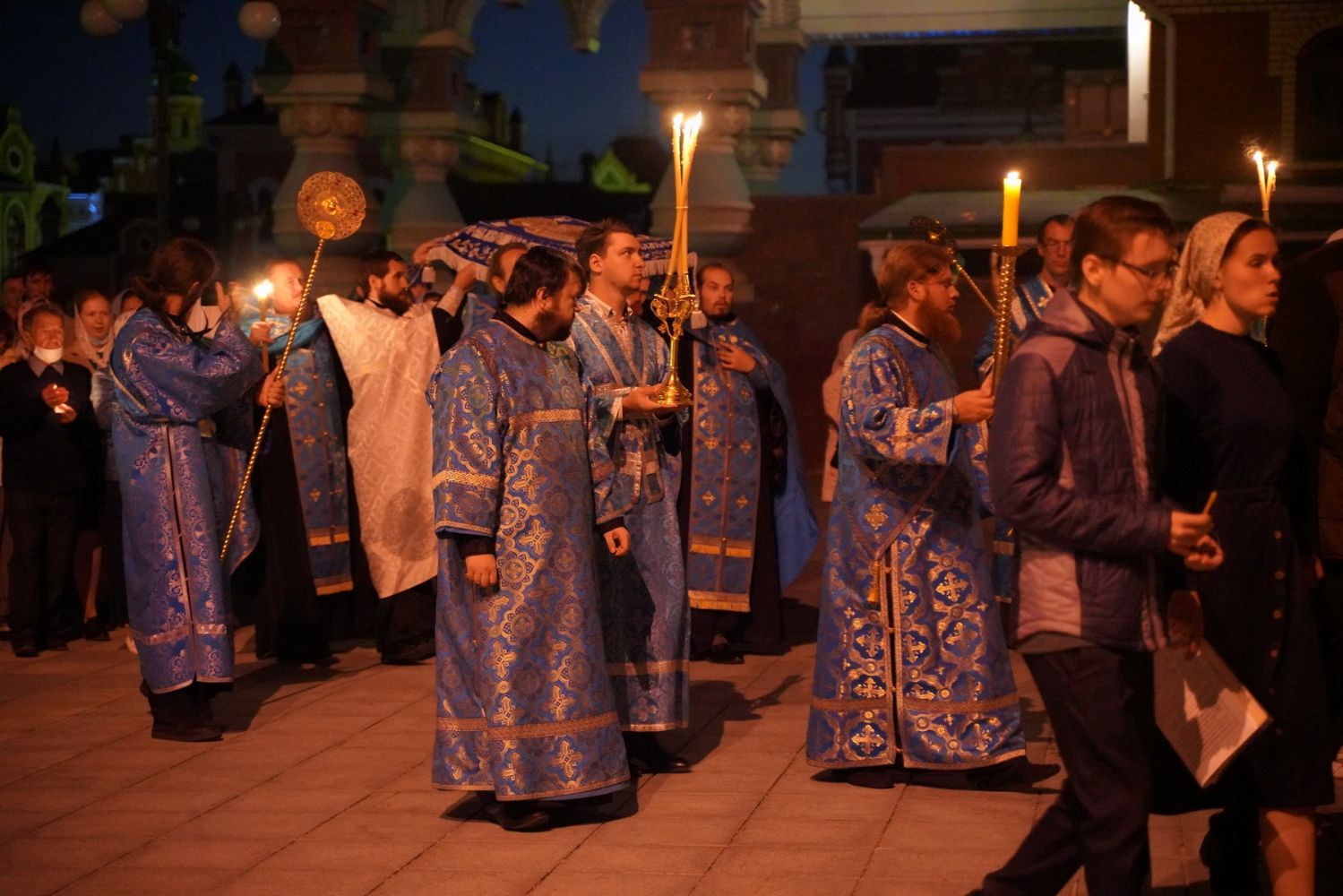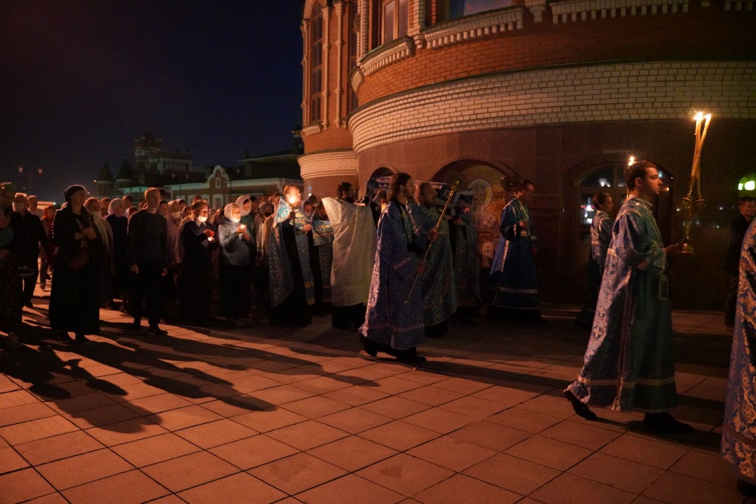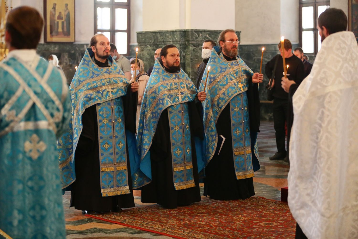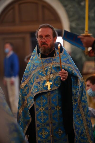 Владыке сослужили секретарь Йошкар-Олинского епархиального управления иеромонах Серафим (Пасанаев), ключарь собора протоиерей Сергий Поглазов, клирики собора и протодиакон Михаил Козловский. Песнопения исполнял хор «Благовест» под руководством регента Надежды Поздеевой.