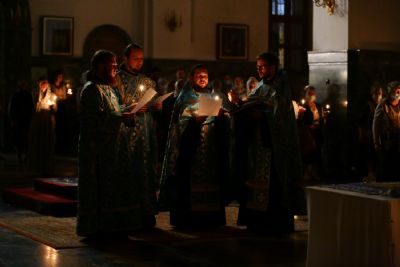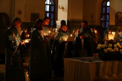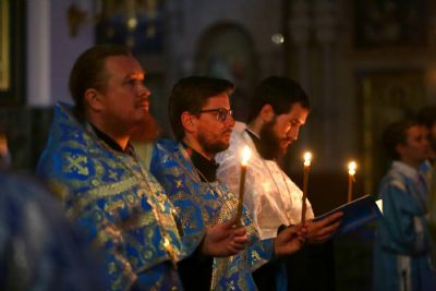 29 августа вечером митрополит Иоанн возглавил богослужение с чином погребения Пресвятой Богородицы в Благовещенском кафедральном соборе.