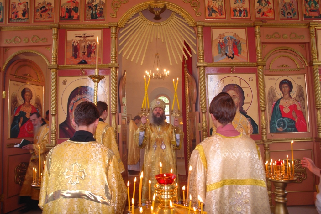 В минувшее воскресение, в день Всех святых, Владыка совершил здесь торжественное богослужение, участие в котором приняли многие верующие. Владыке сослужил клирик церкви Рождества Пресвятой Богородицы села Семеновка иерей Сергий Асланов. По завершении Литургии состоялся праздничный молебен с крестным ходом вокруг храма, во время которого Владыка щедро окропил всех святой водой.