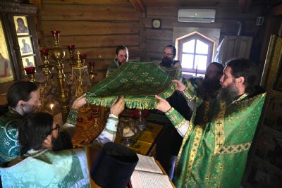 Божественную литургию возглавил благочинный Северо-Западного церковного округа, настоятель храма пророка Илии п. Килемары протоиерей Андрей Романов, ему сослужили клирик монастыря священноинок Паисий (Киселев), настоятель храма Рождества Иоанна Предтечи с. Коротни игумен Никодим (Актанаев), настоятель храма Рождества Христова с. Арда иерей Григорий Михалев, настоятель храма Зосимы и Савватия, чудотворцев Соловецких с. Красная Речка иерей Евгений Хованский и клирик храма пророка Илии п. Килемары иерей Димитрий Васенев. Песнопения исполнял мужской хор храма Сретения Господня с. Кучка.