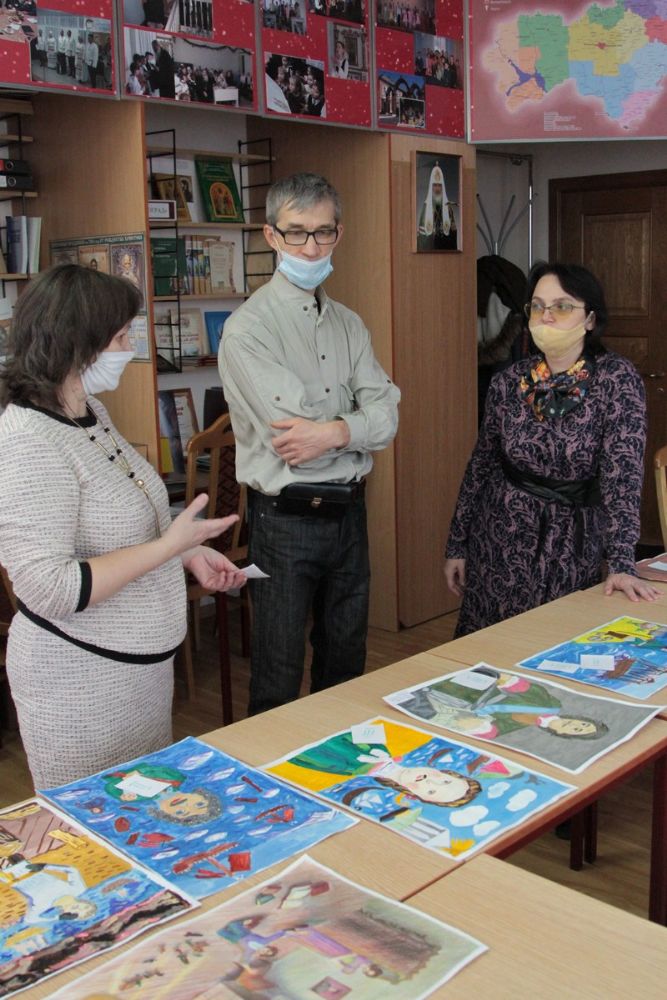 В работе жюри приняли участие: руководитель Отдела религиозного образования и катехизации Йошкар-Олинской и Марийской епархии протоиерей Андрей Норкин, начальник отдела межнациональных и межконфессиональных отношений Министерства культуры, печати и по делам национальностей РМЭ, педагог дополнительного образования ГБОУ ДО РМЭ «Дворец творчества детей и молодежи» изостудии «Творец» Белугин Ю.А., педагог дополнительного образования ГБОУ ДО РМЭ «Дворец творчества детей и молодежи» Суркова Е.Г., художник-иконописец Гаврилова Е.М., сотрудник Отдела религиозного образования Йошкар-Олинской и Марийской епархии Рыбакова М.Н.
