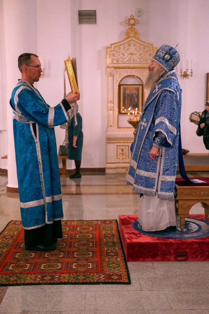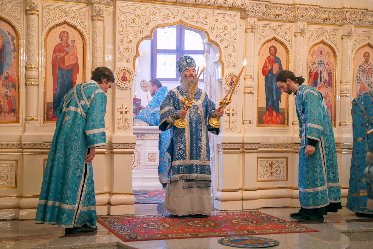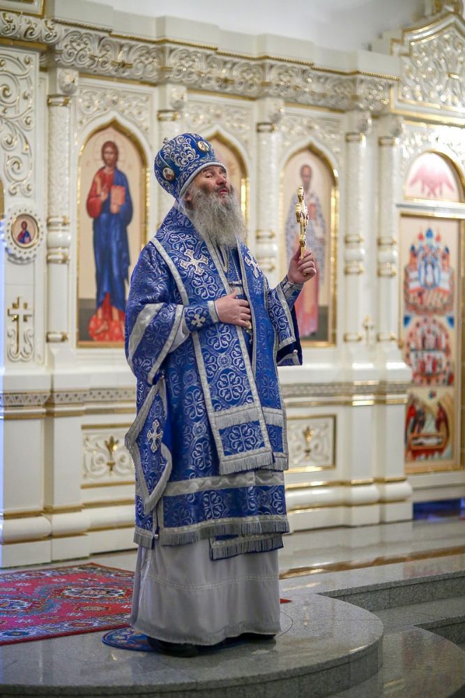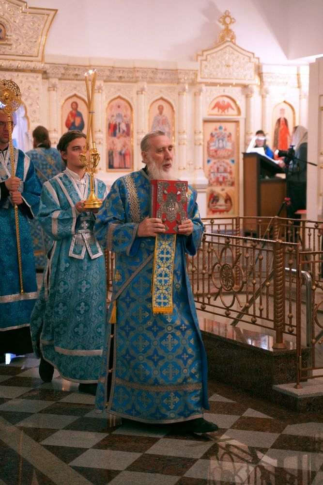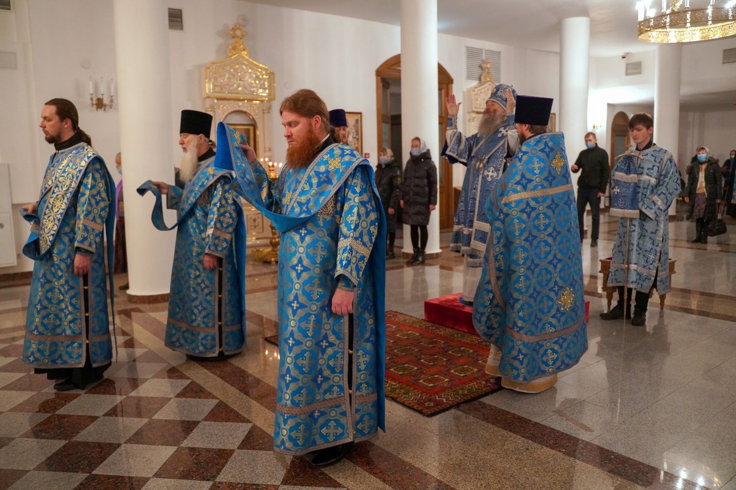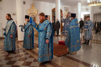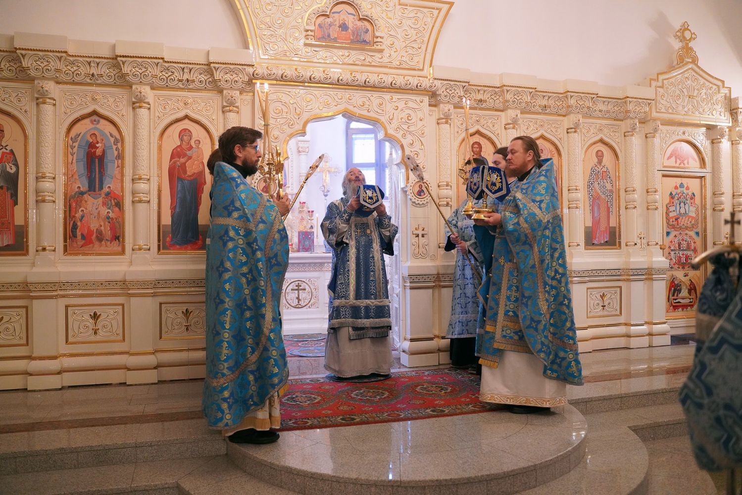 Архипастырю сослужили ключарь кафедрального собора протоиерей Сергий Поглазов, клирики собора иерей Евгений Самойлов, диаконы Андрей Дружинин и Игорь Коваль и протодиакон Михаил Козловский. Песнопения исполнял хор «Благовест» под управлением регента Татьяны Черновой.