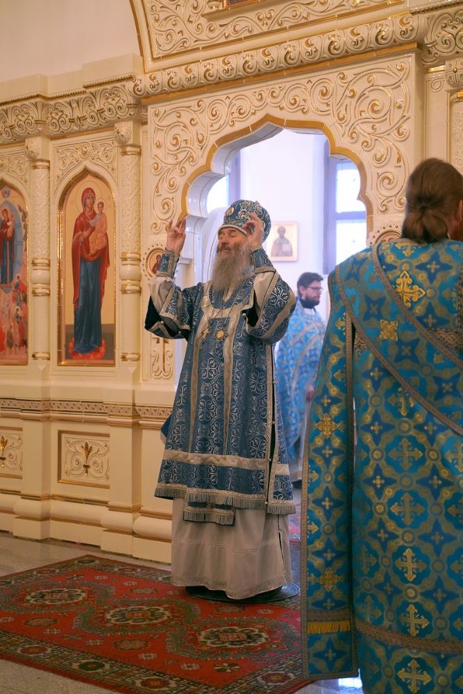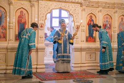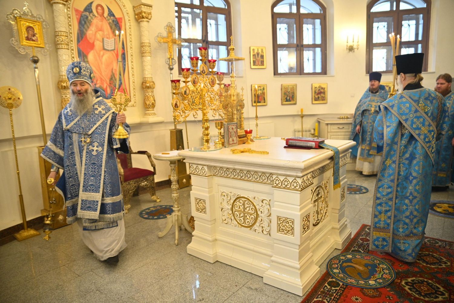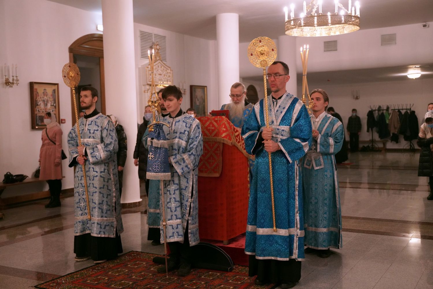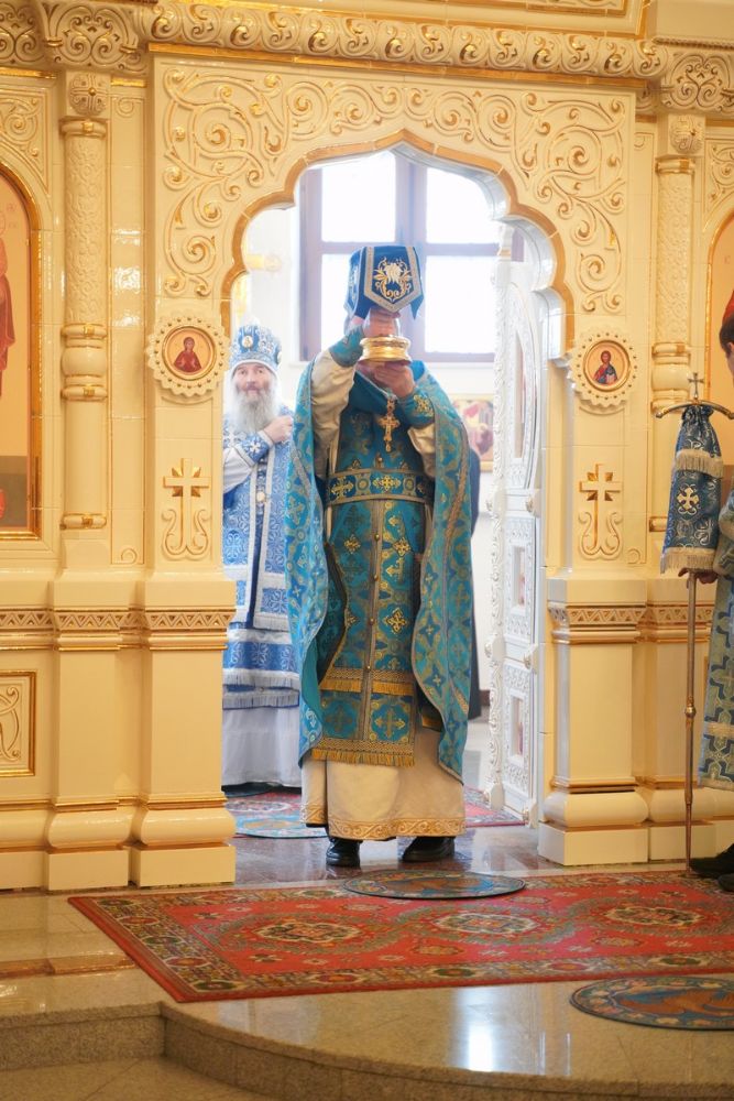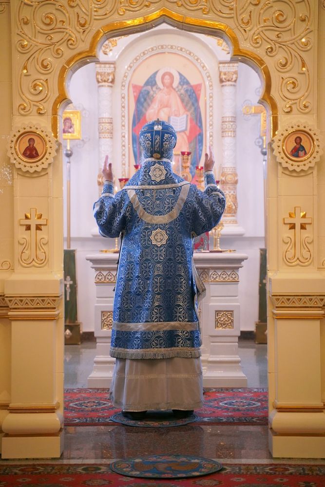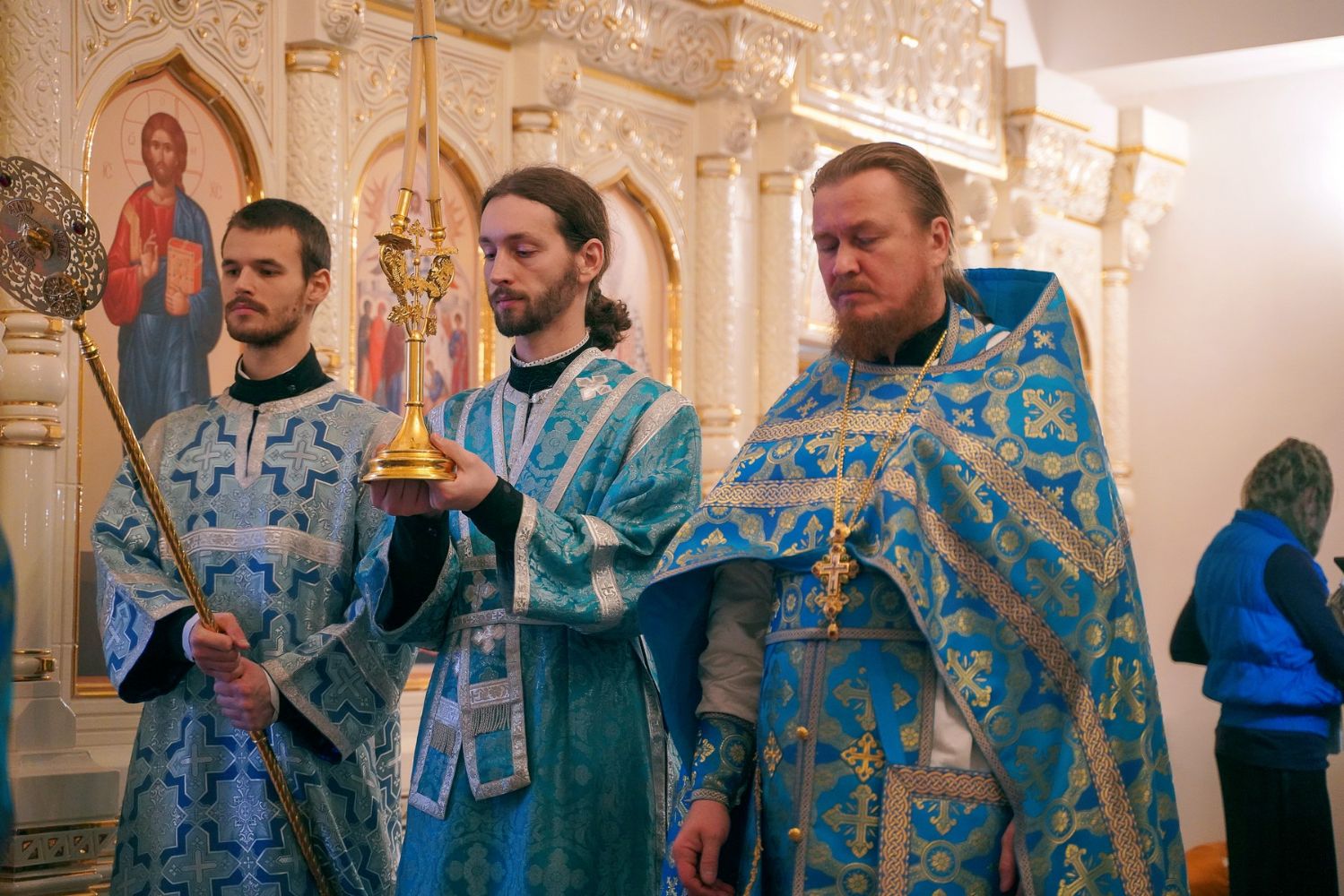 Архипастырю сослужили ключарь кафедрального собора протоиерей Сергий Поглазов, клирики собора иерей Евгений Самойлов, диаконы Андрей Дружинин и Игорь Коваль и протодиакон Михаил Козловский. Песнопения исполнял хор «Благовест» под управлением регента Татьяны Черновой.