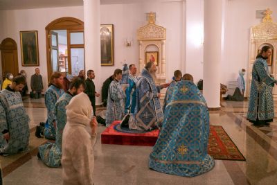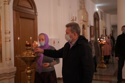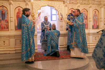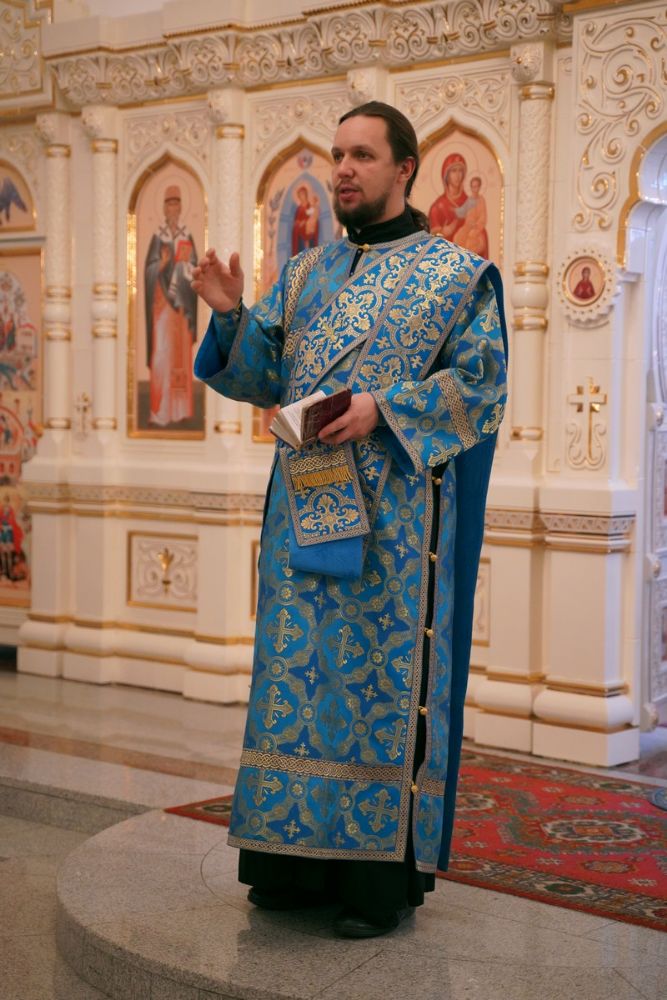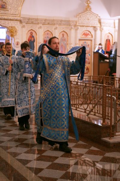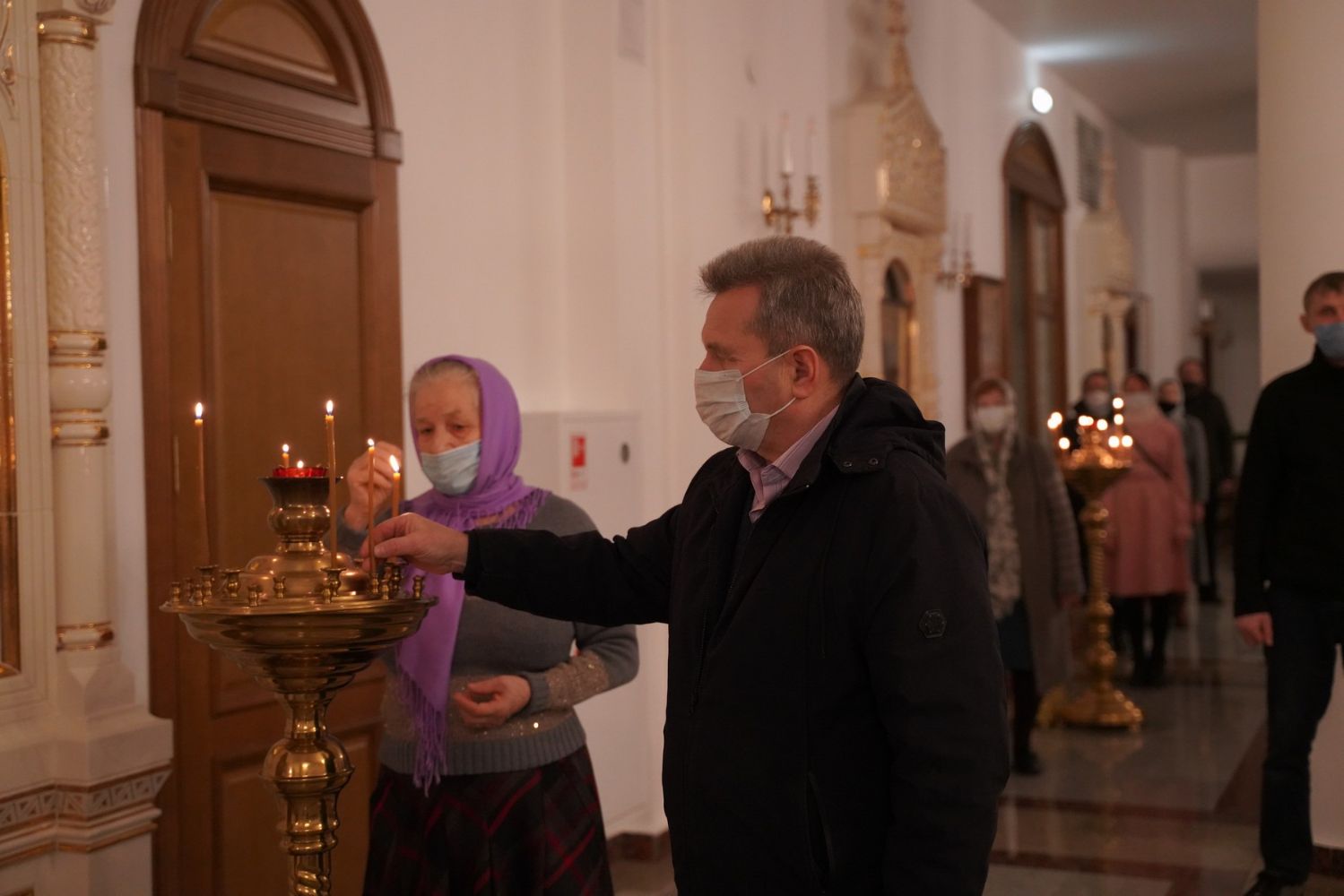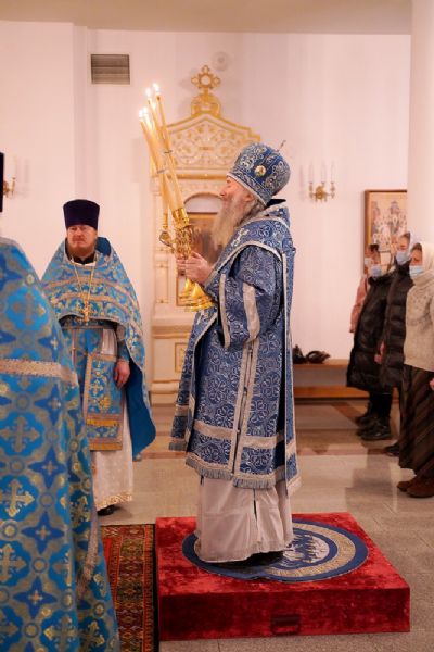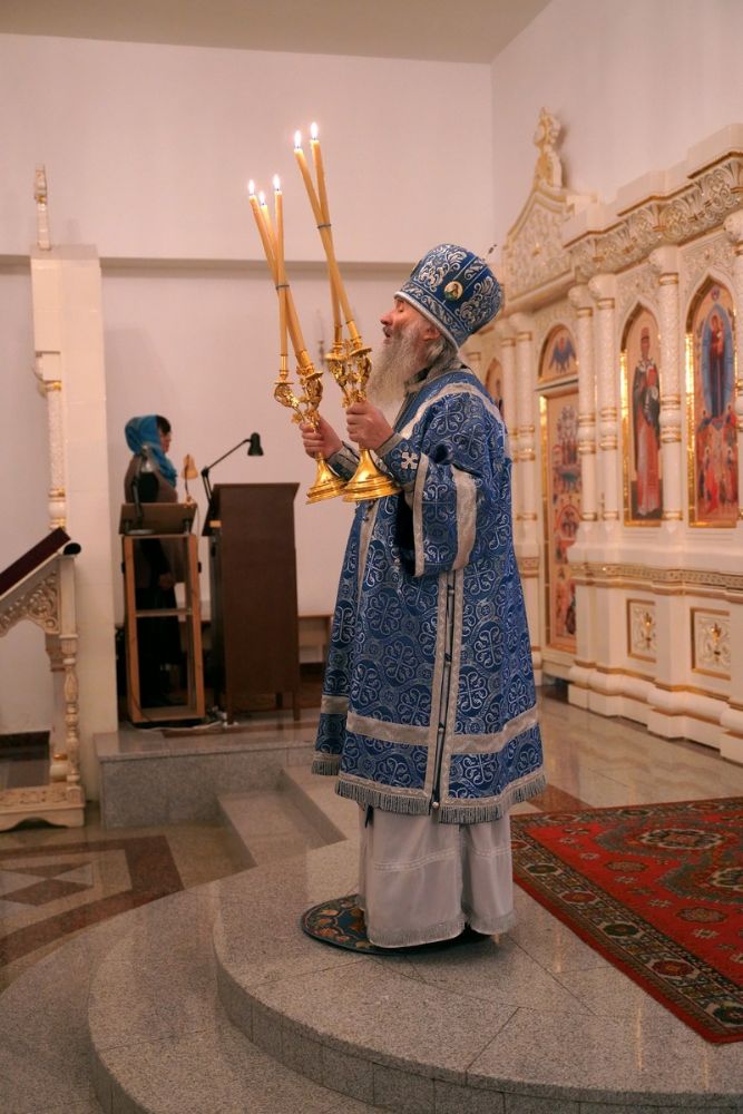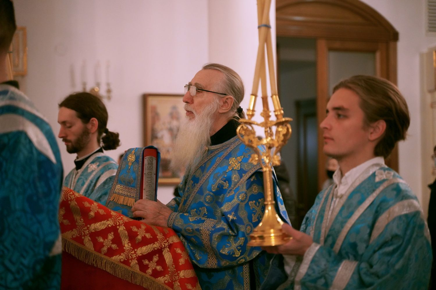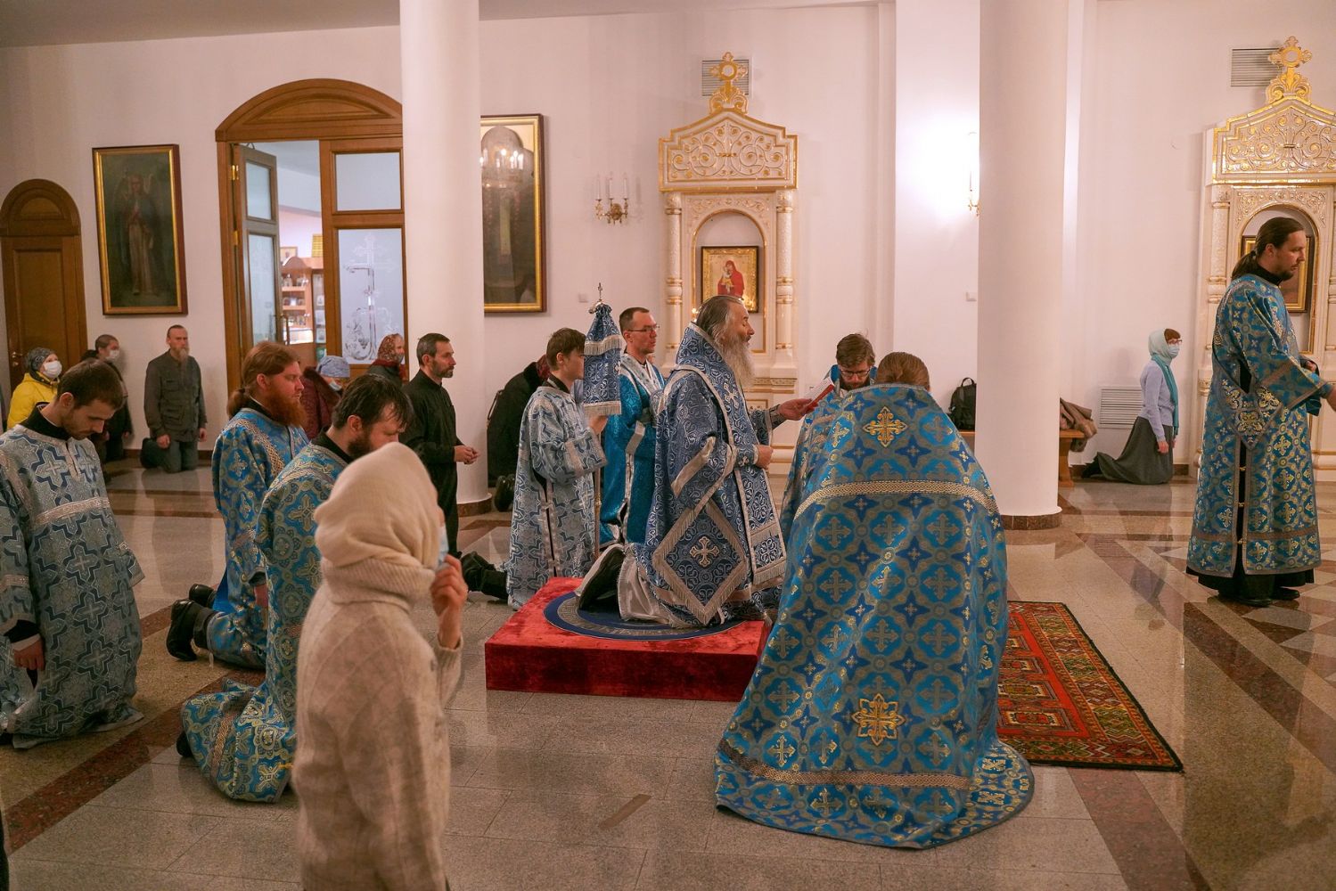 Архипастырю сослужили ключарь кафедрального собора протоиерей Сергий Поглазов, клирики собора иерей Евгений Самойлов, диаконы Андрей Дружинин и Игорь Коваль и протодиакон Михаил Козловский. Песнопения исполнял хор «Благовест» под управлением регента Татьяны Черновой.