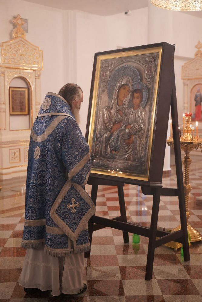 В проповеди владыка напомнил историю чудотворного образа Богородицы «Иверская» – в иконоборческие годы IX века благочестивая вдовица из Никеи, чтобы спасти икону от поругания, пустила ее по морским водам.