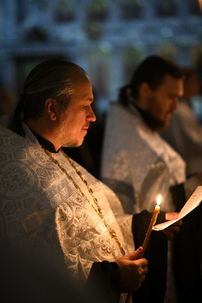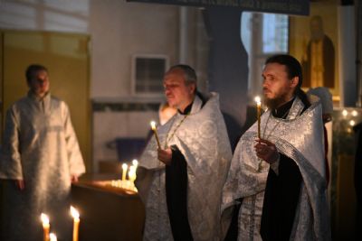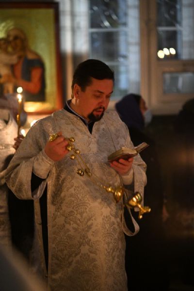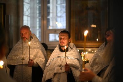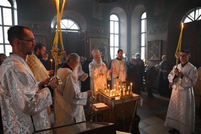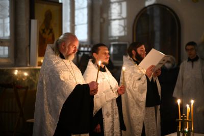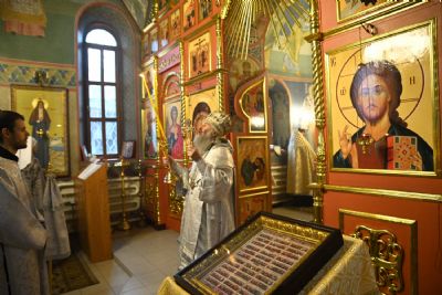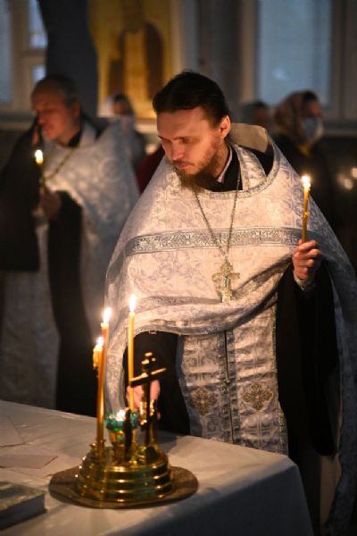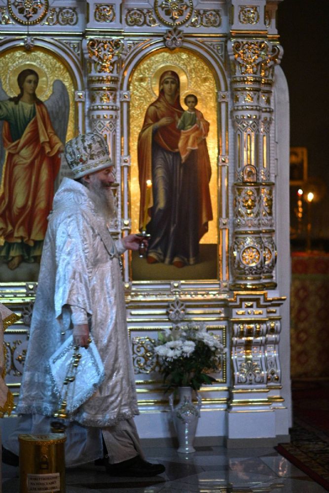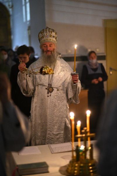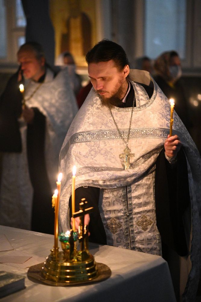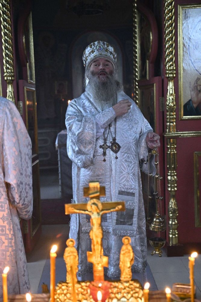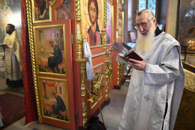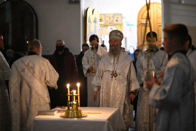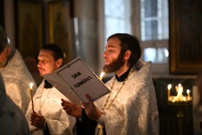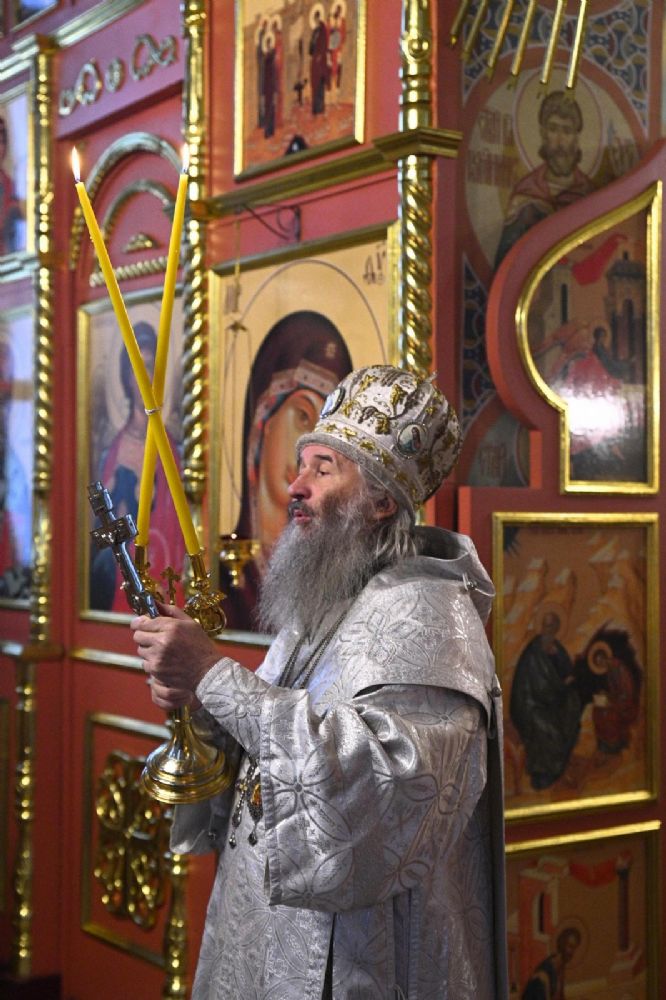 Его Высокопреосвященству сослужили настоятель собора иерей Алексий Кирюшкин, клирики собора и протодиакон Михаил Козловский. Песнопения исполнял хор под управлением регента Алисы Вылегжаниной.