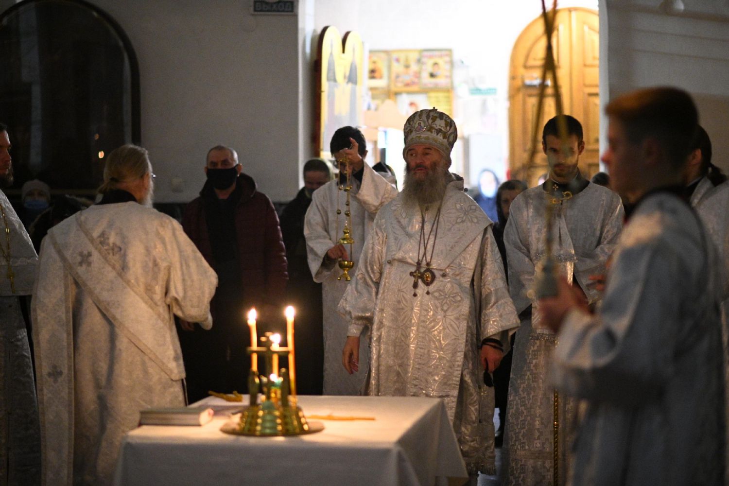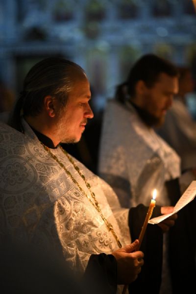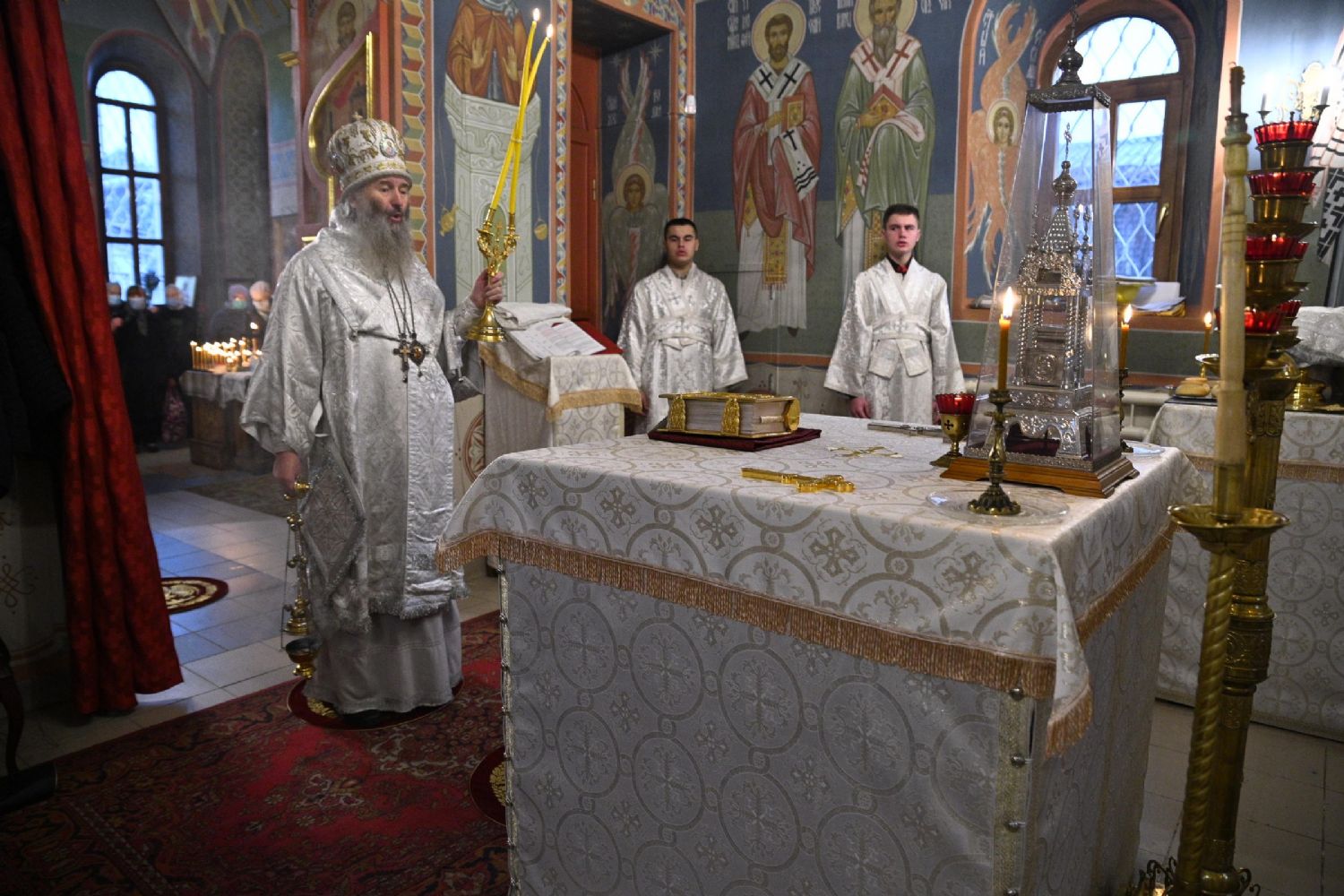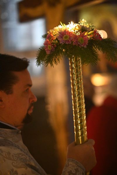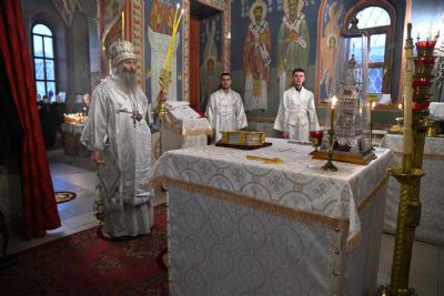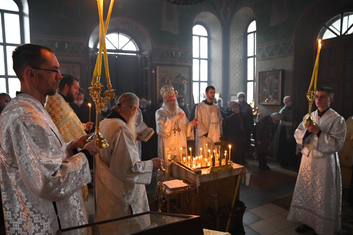 Его Высокопреосвященству сослужили настоятель собора иерей Алексий Кирюшкин, клирики собора и протодиакон Михаил Козловский. Песнопения исполнял хор под управлением регента Алисы Вылегжаниной.