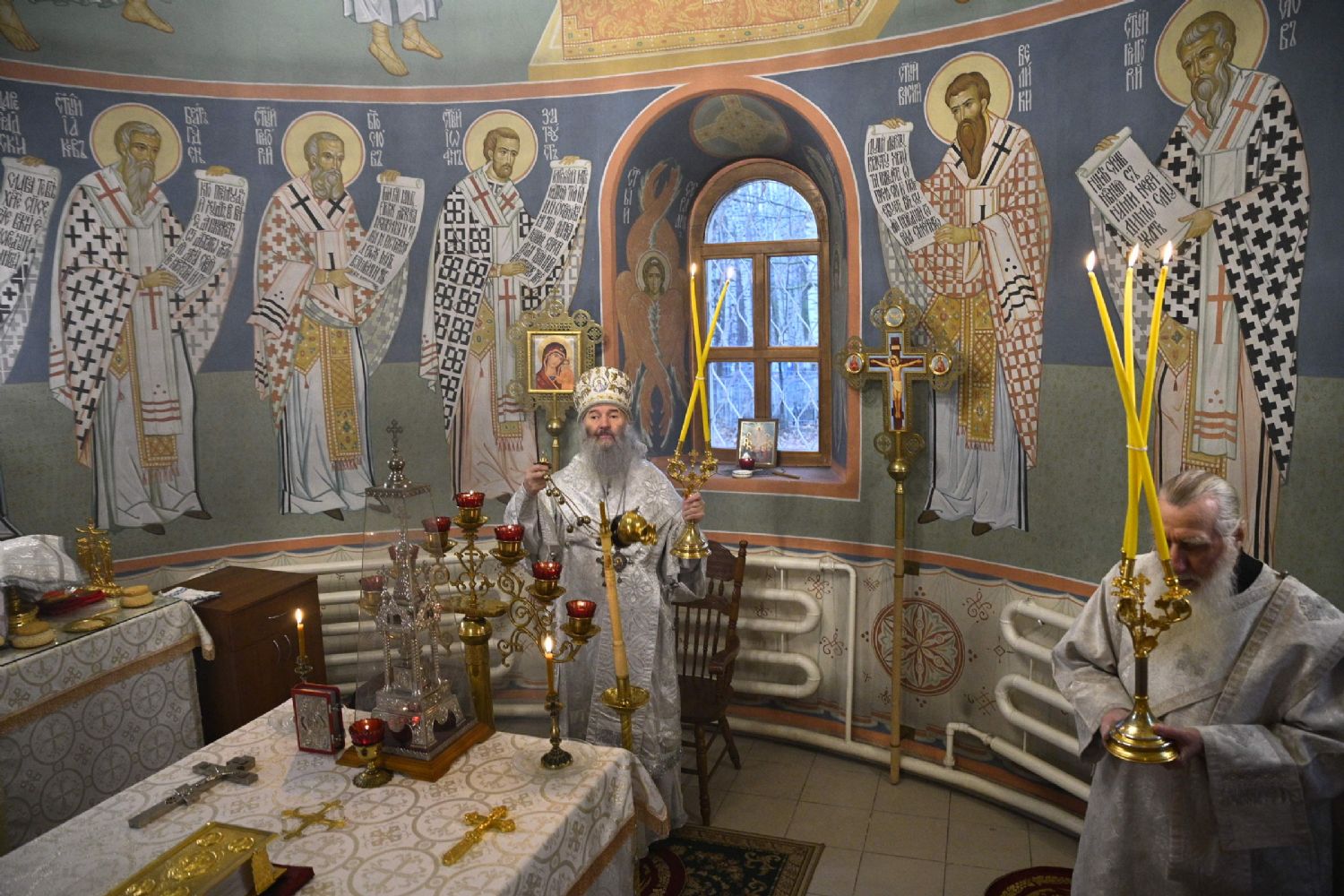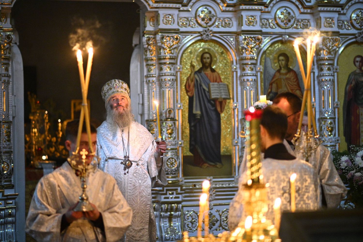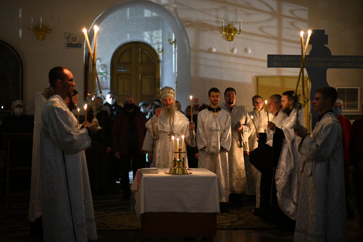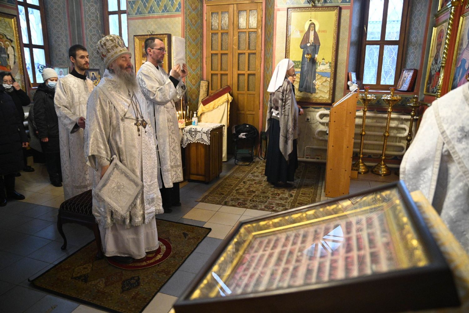 Его Высокопреосвященству сослужили настоятель собора иерей Алексий Кирюшкин, клирики собора и протодиакон Михаил Козловский. Песнопения исполнял хор под управлением регента Алисы Вылегжаниной.