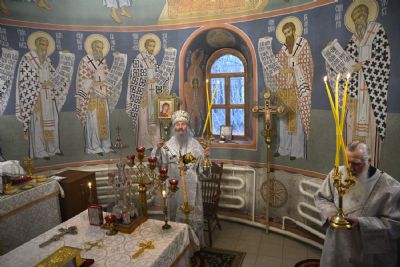 Архипастырю сослужили клирики храма Рождества Пресвятой Богородицы с. Семеновка иерей Павел Дурандин и протодиакон Михаил Козловский. Песнопения исполнял хор сестер милосердия.