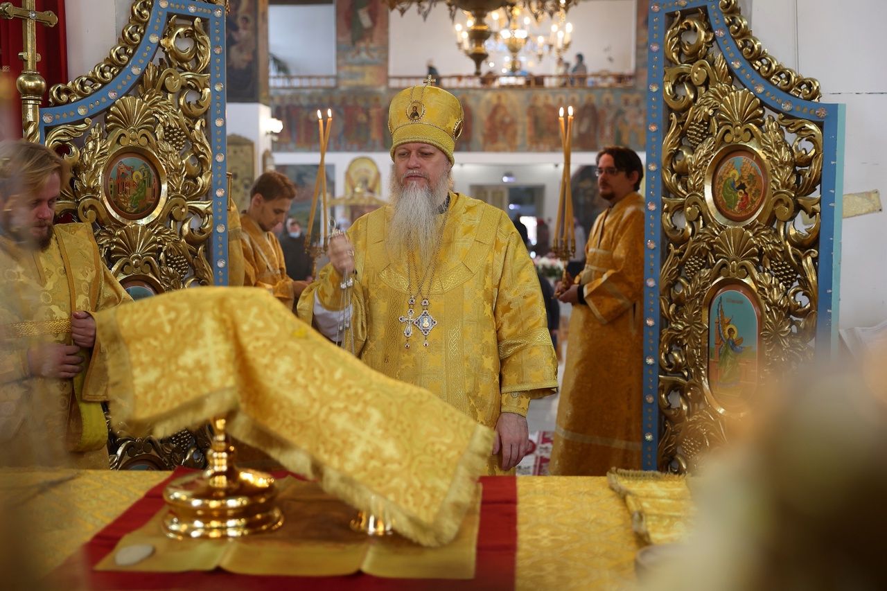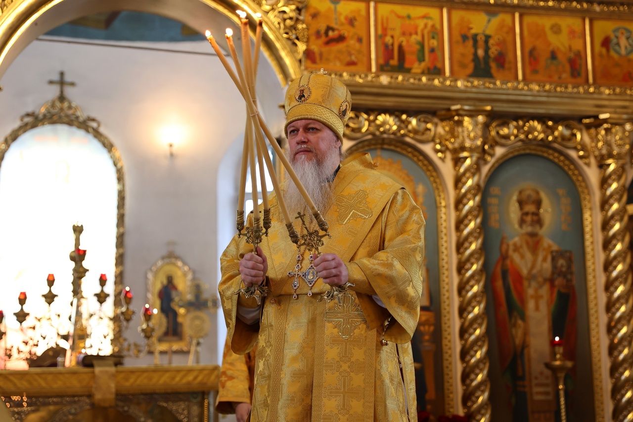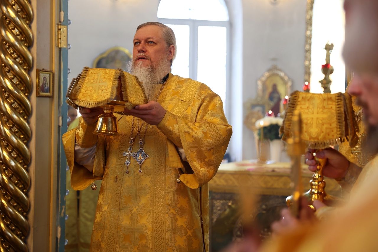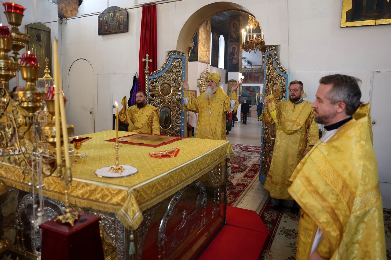 В день памяти святителя Тихона (Белавина) епископ Феофан возглавил Литургию в Никольском соборе Волжска 2634