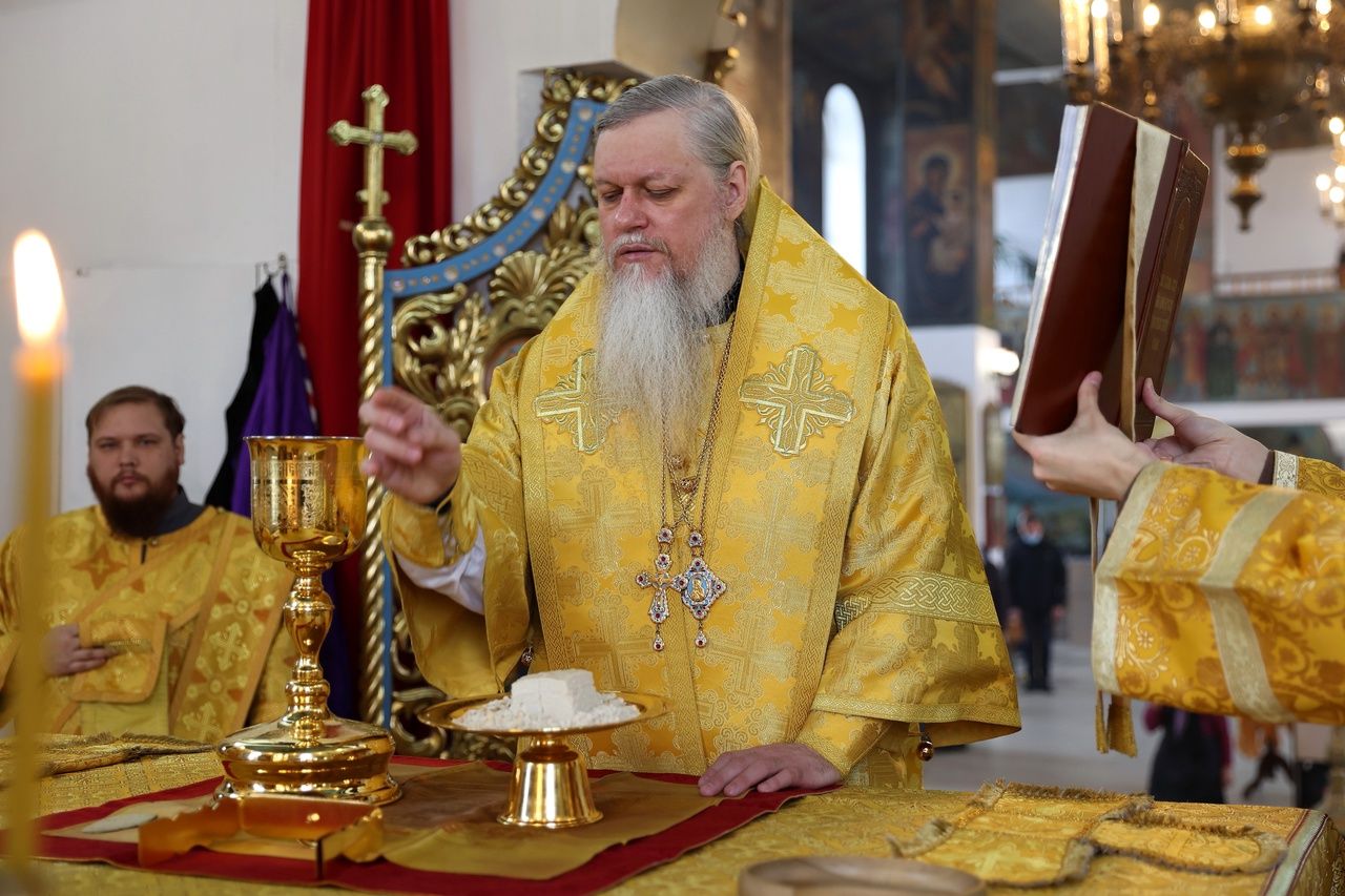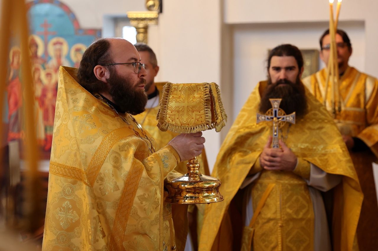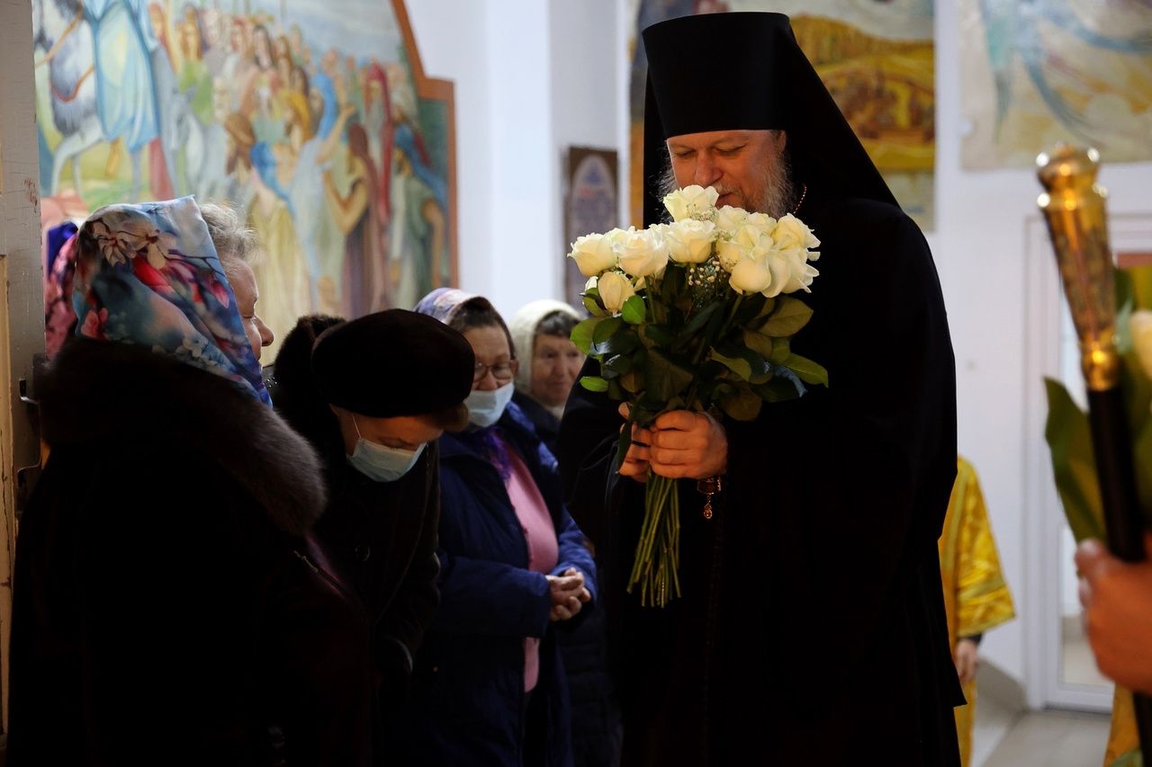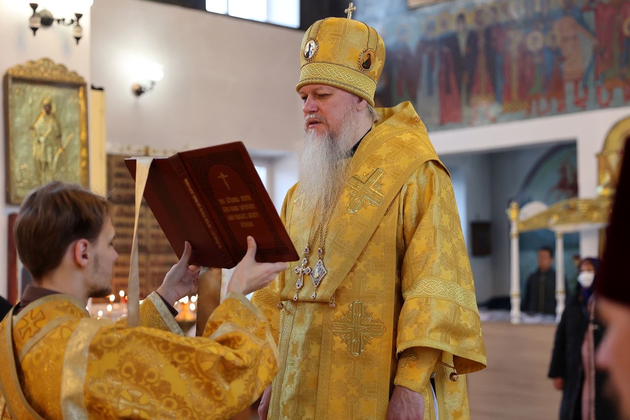 В день памяти святителя Тихона (Белавина) епископ Феофан возглавил Литургию в Никольском соборе Волжска 2634
