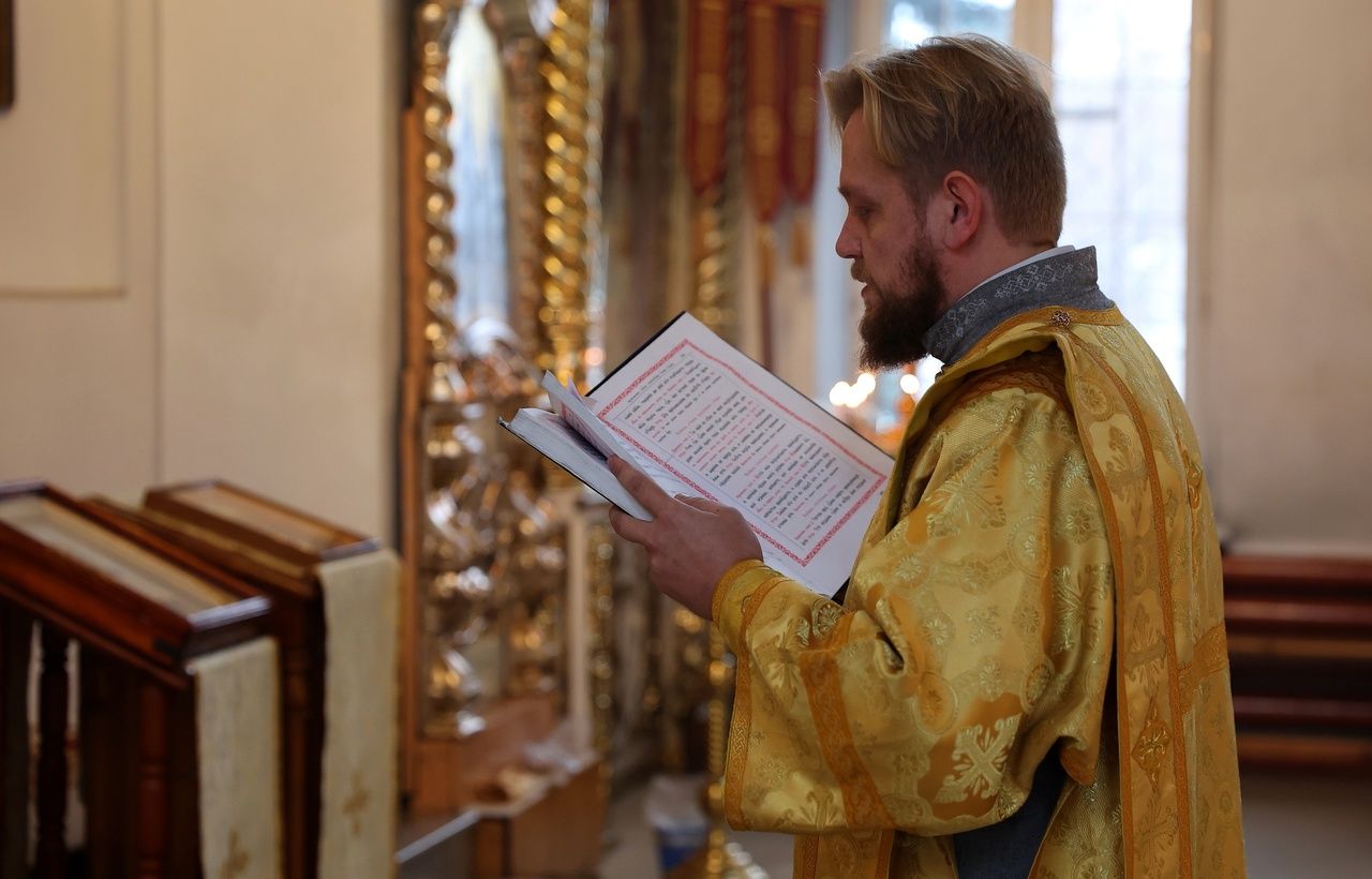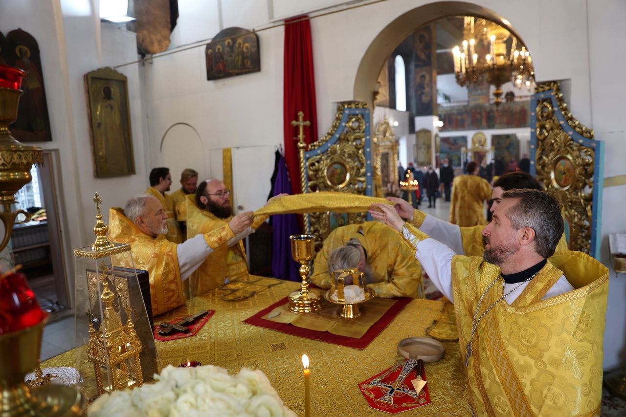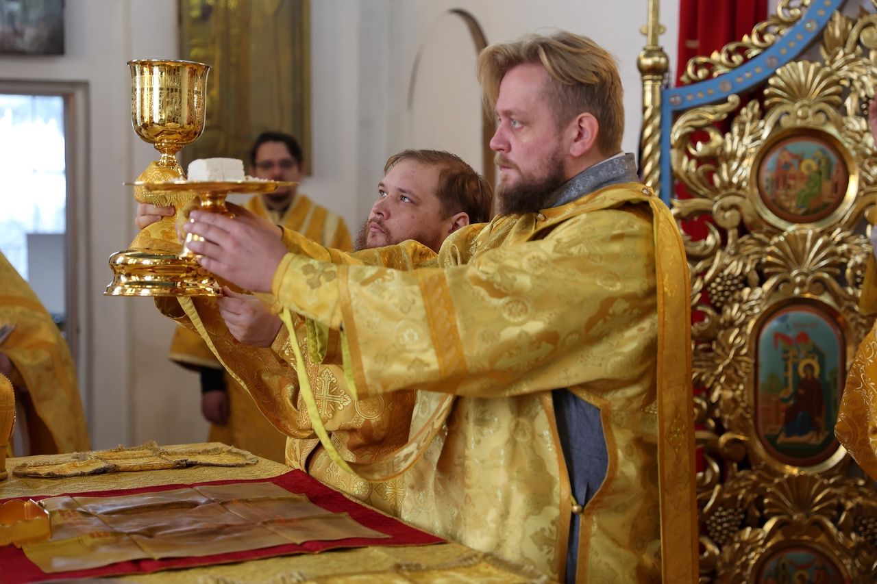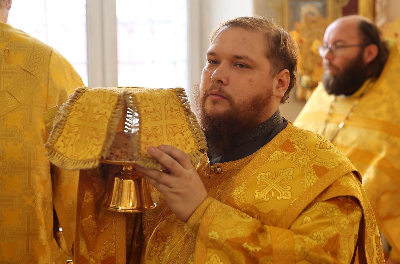 В день памяти святителя Тихона (Белавина) епископ Феофан возглавил Литургию в Никольском соборе Волжска 2634