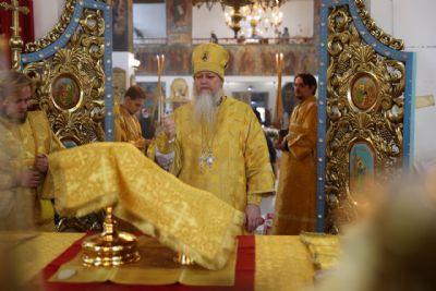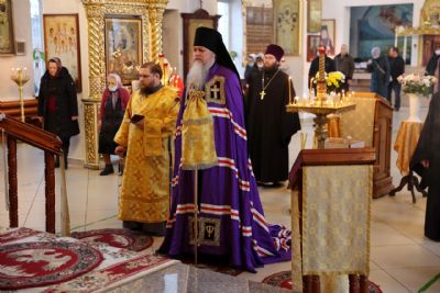 Его Преосвященству сослужило духовенство епархии. За богослужением пел архиерейский хор.