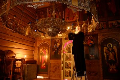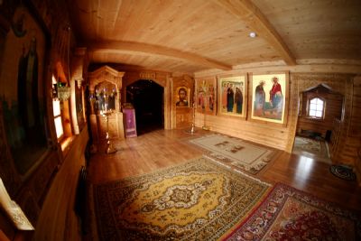 После богослужения и трапезы на свежем воздухе насельник обители монах Никон рассказал сестрам об истории создания монастыря. По рассказу местных жителей, на этом месте люди видели столп света, на котором стояла Пресвятая Богородица. И, с благословения Пречистой, здесь решено было поставить обитель.