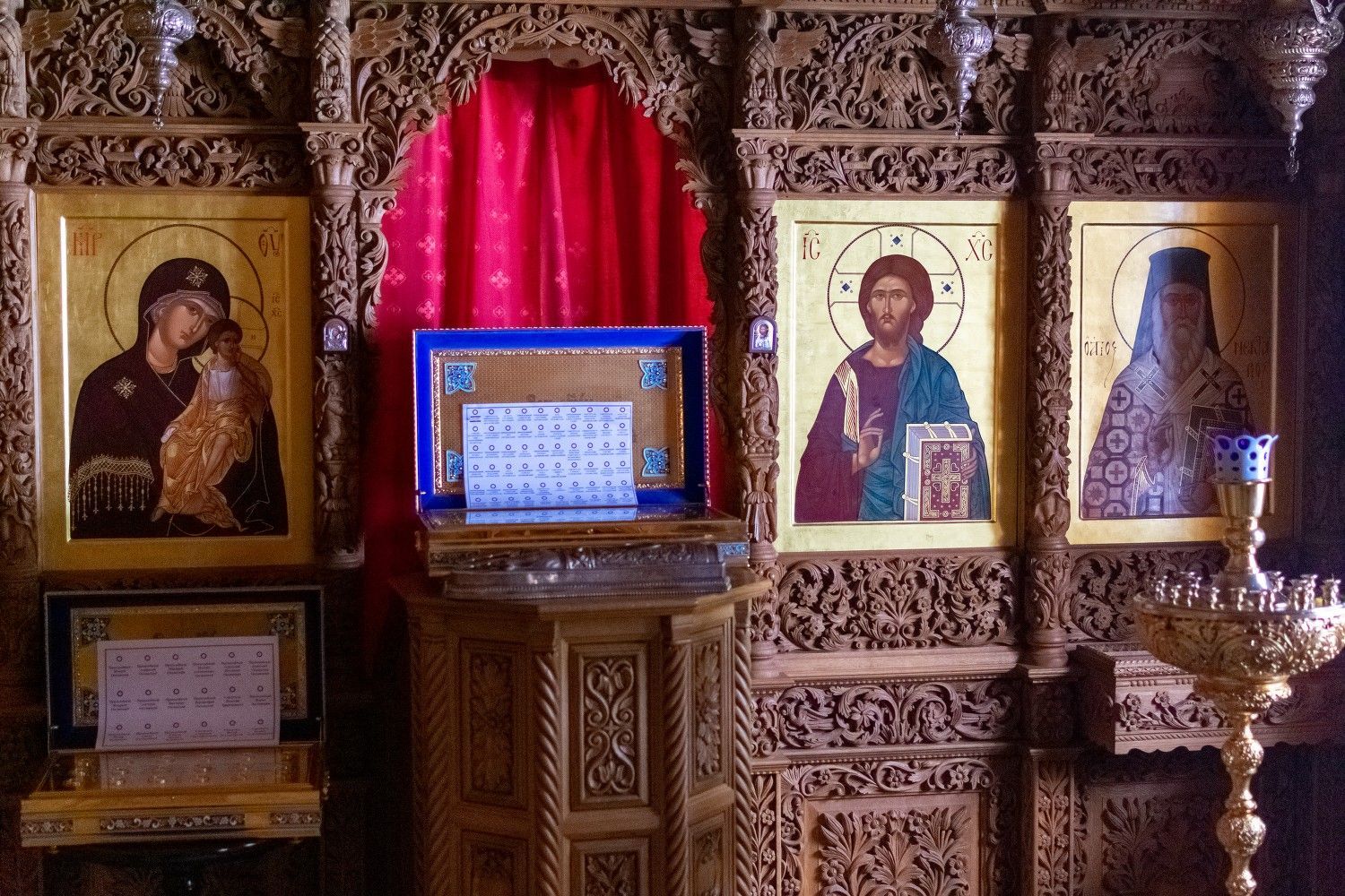 В монастыре хранятся частицы мощей более 100 святых угодников Божиих, в том числе преподобного Сергия Радонежского, небесного покровителя обители. В 2003 году сюда были привезены мощи святителя Нектария Эгинского, митрополита Пентапольского, по молитвам которого совершаются многочисленные чудеса исцеления. В честь святителя Нектария в монастырском храме освящен придел.