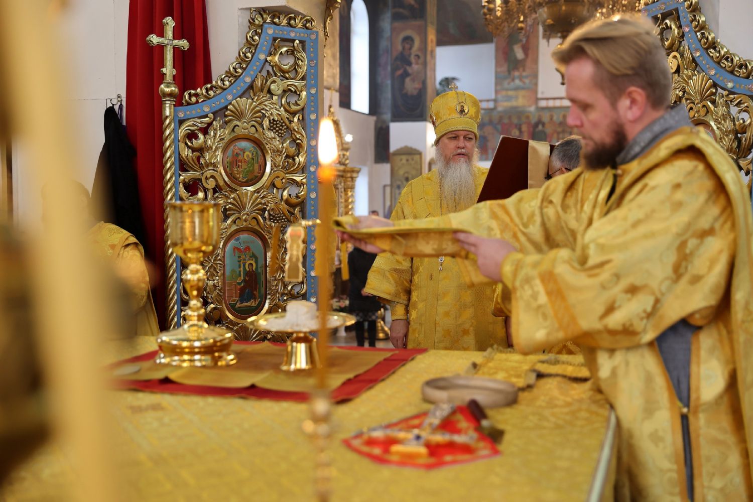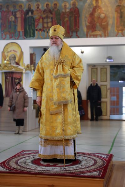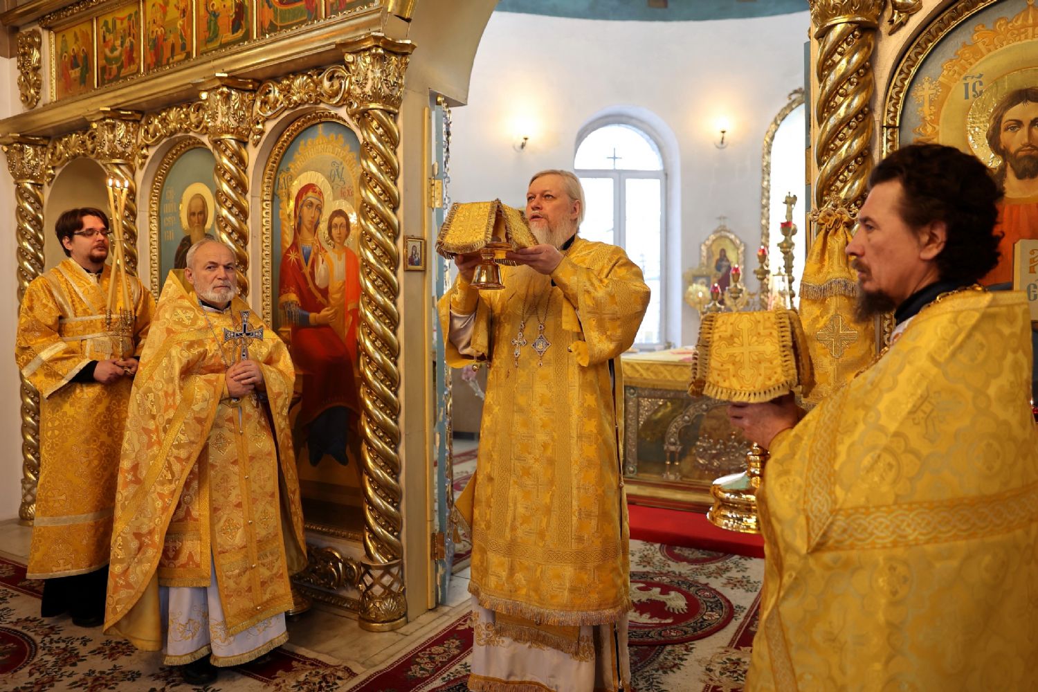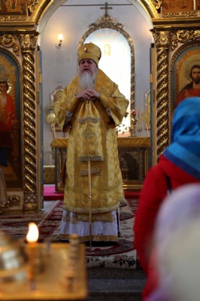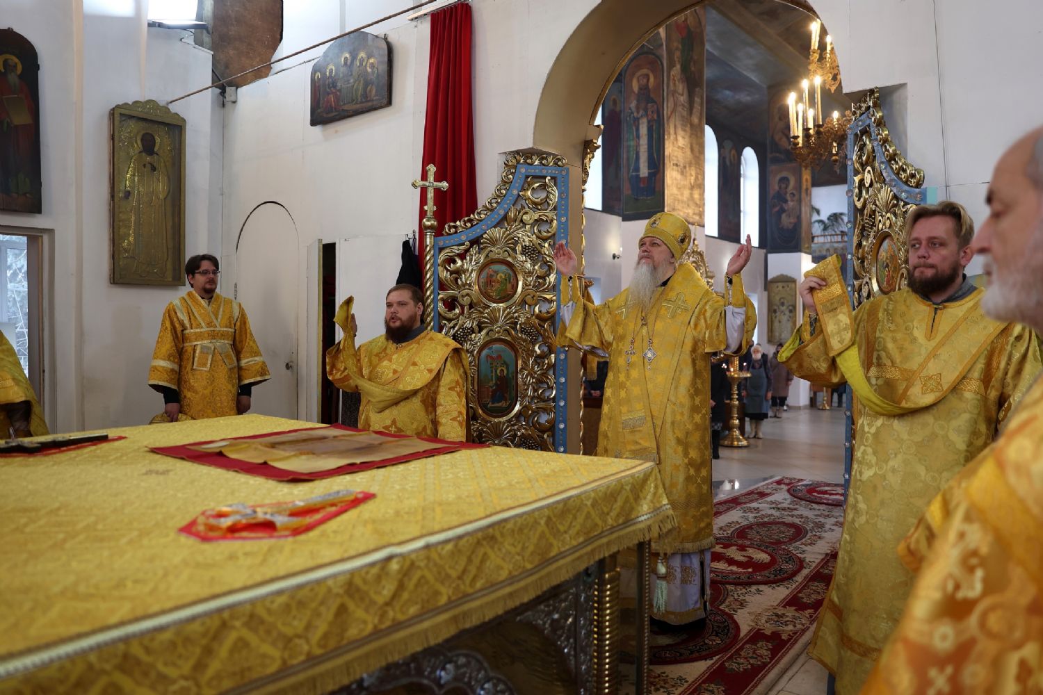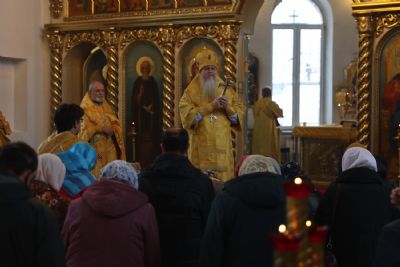 Владыке сослужили клирики собора. Песнопения исполнял архиерейский хор.