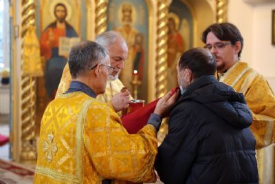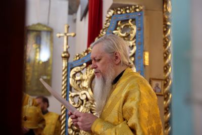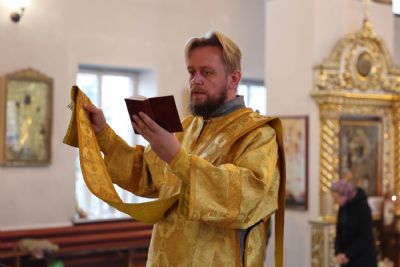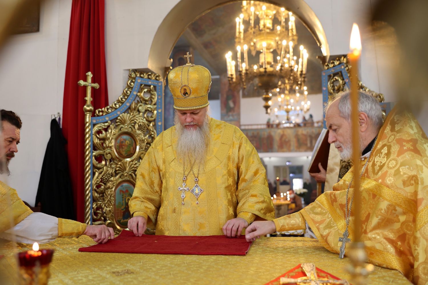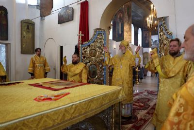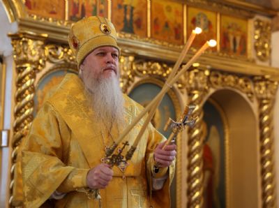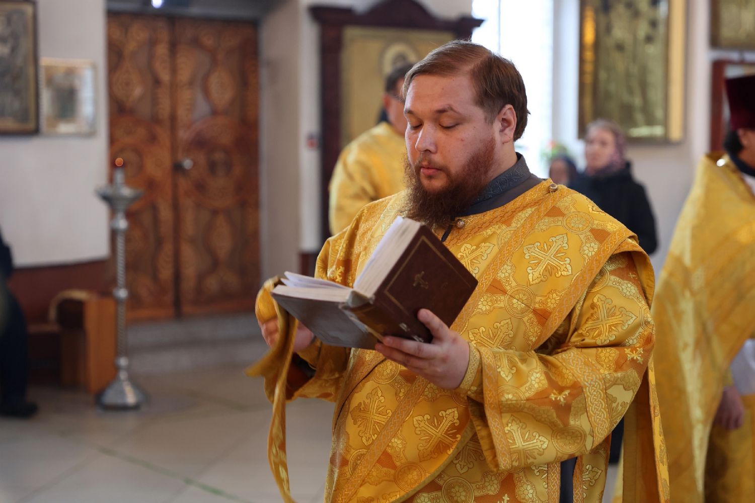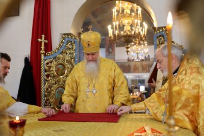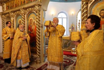 Владыке сослужили клирики собора. Песнопения исполнял архиерейский хор.