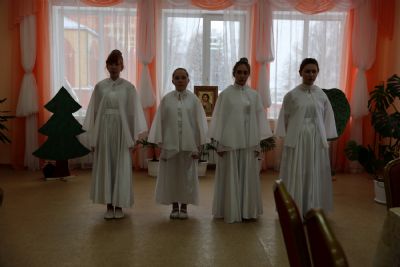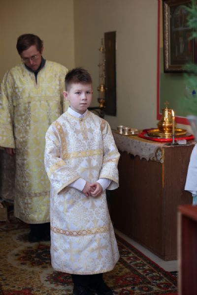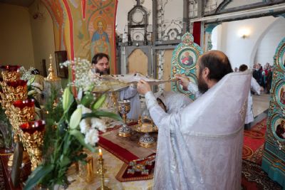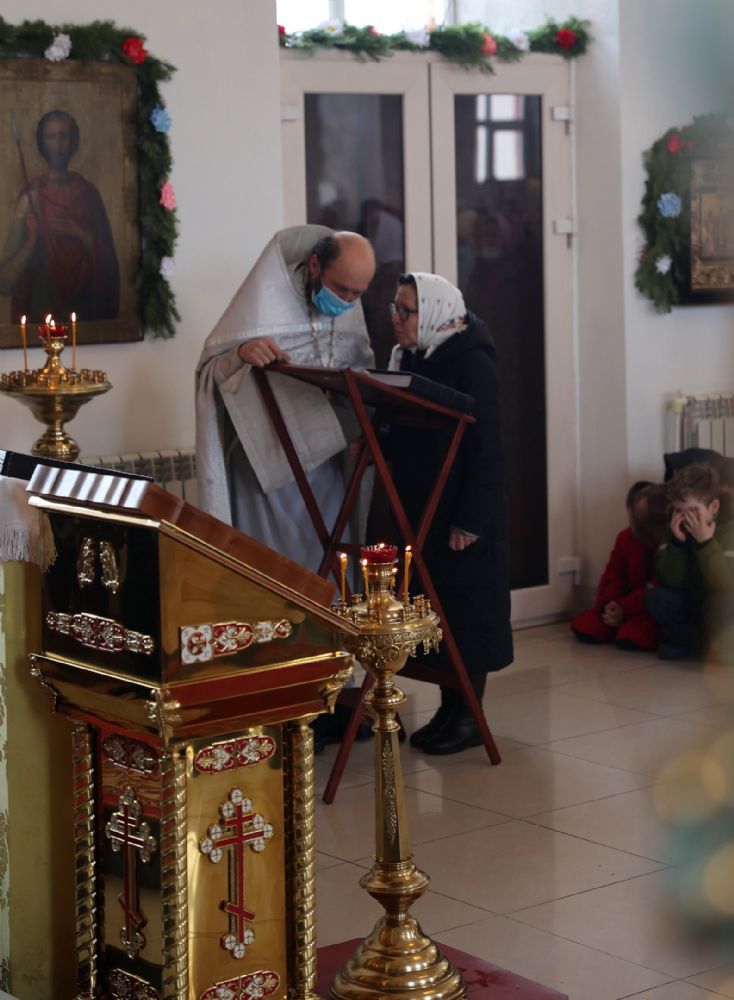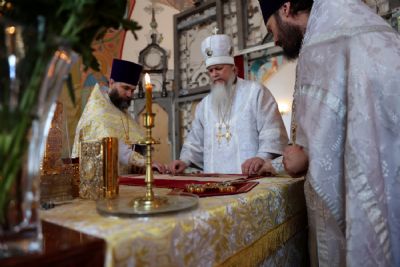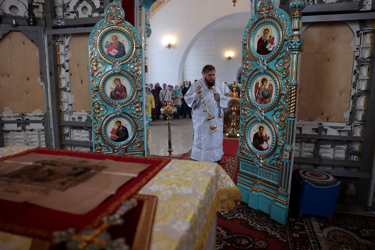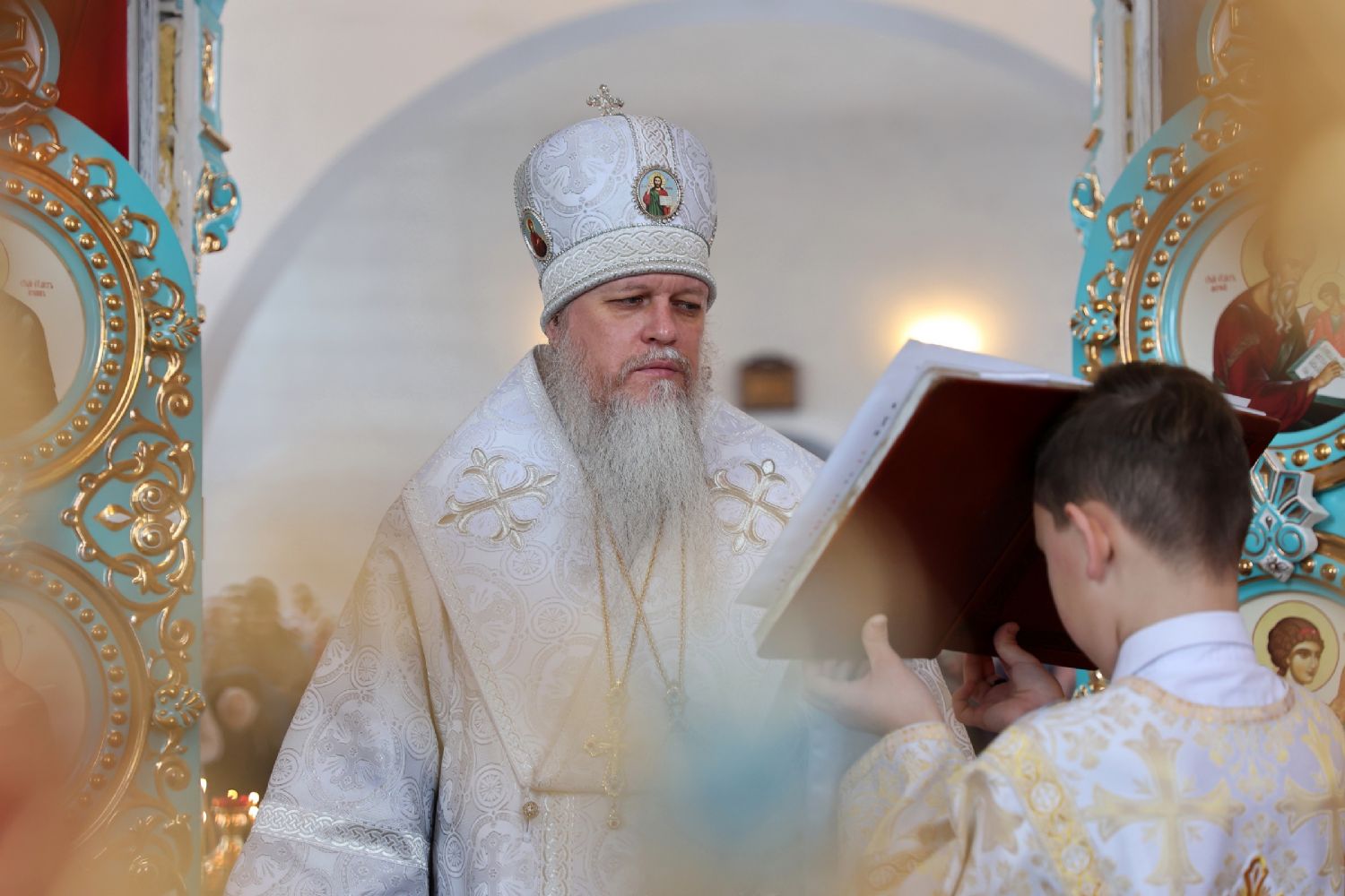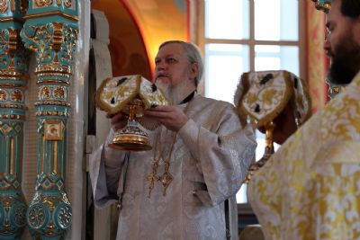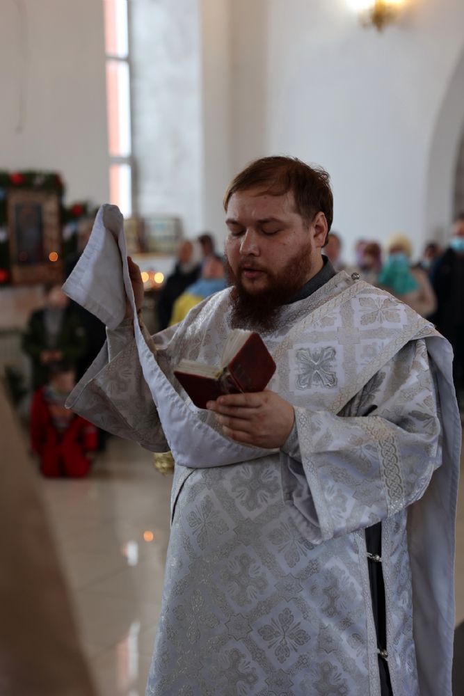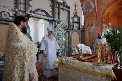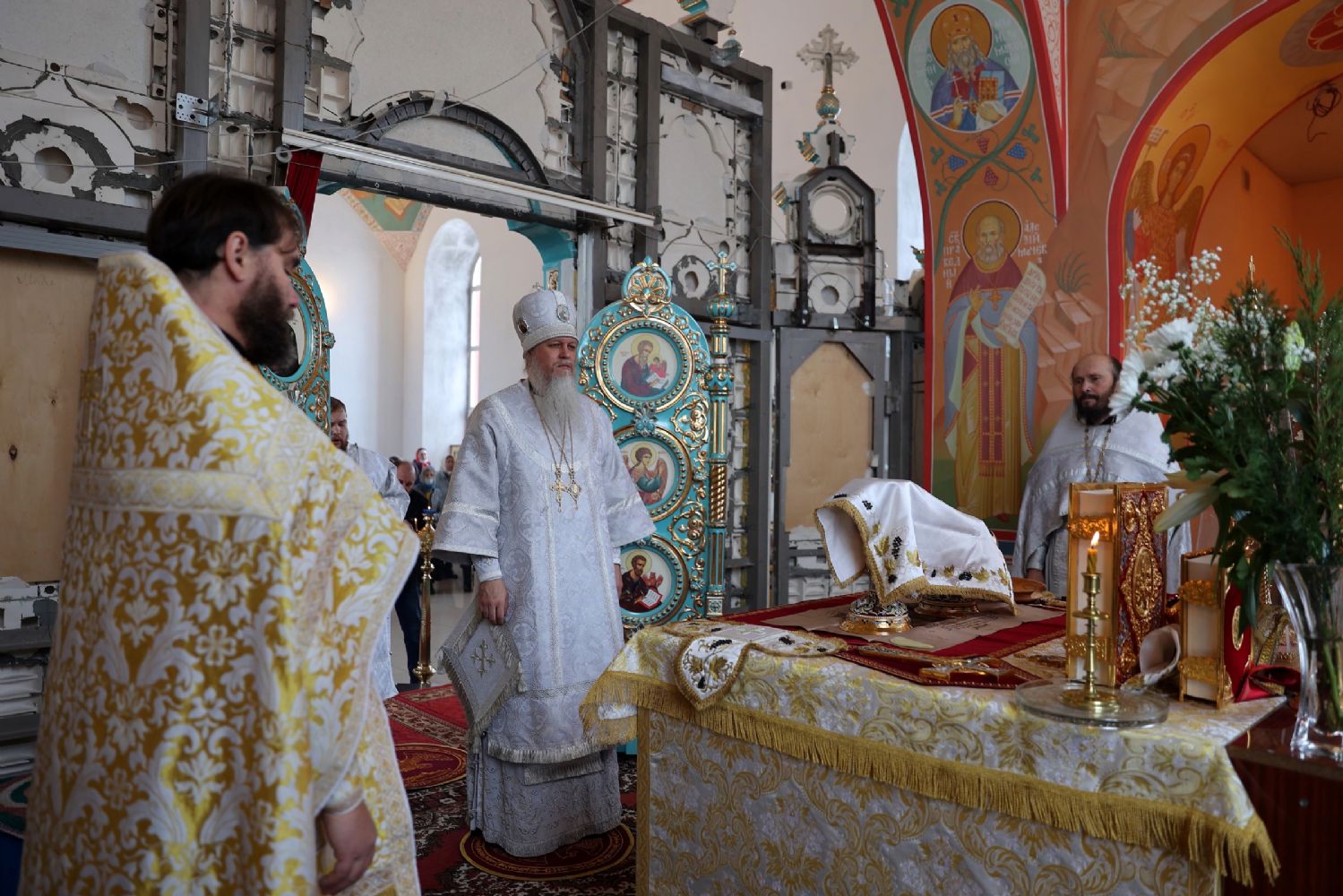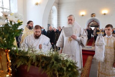 Его Преосвященству сослужили настоятель храма протоиерей Владимир Власов, настоятель храма Покрова Пресвятой Богородицы с. Марисола протоиерей Сергий Сильдушкин, клирик Никольского собора г. Волжска диакон Иоанн Захаров. Песнопения исполнял хор храма.