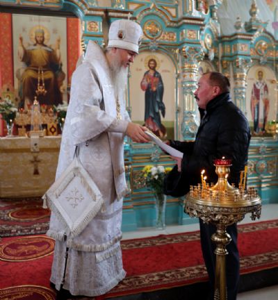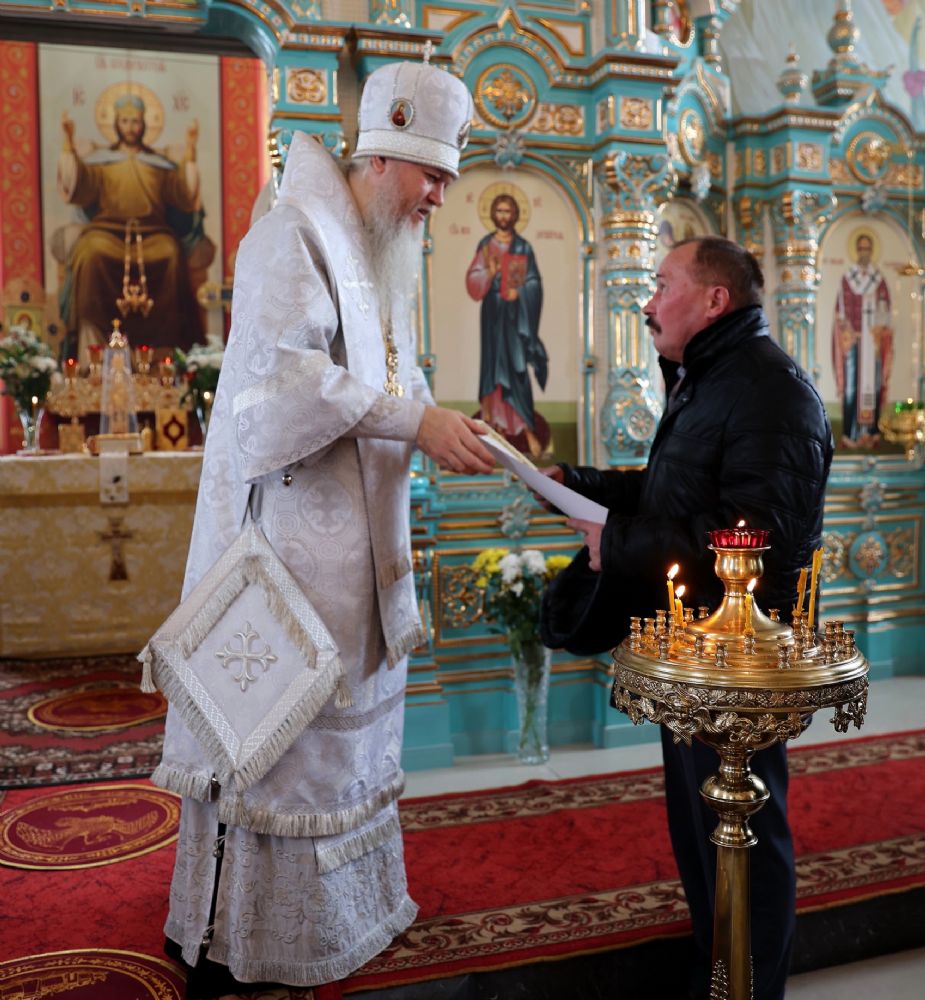 Владыка Феофан поблагодарил настоятеля Михайло-Архангельского храма протоиерея Владимира Власова за постоянную заботу о врученной ему пастве, а собравшихся – за участие в молитве и за добрые дела в строительстве и благоукрашении храма.