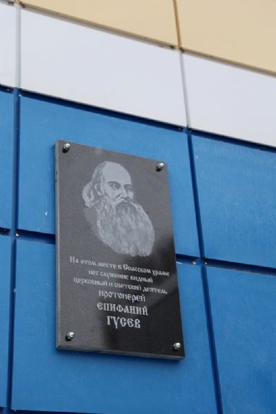 После Литургии, на месте бывшего Спасского храма в Сернуре, прошло торжественное открытие мемориальной доски видному церковному и светскому деятелю протоиерею Епифанию Гусеву.