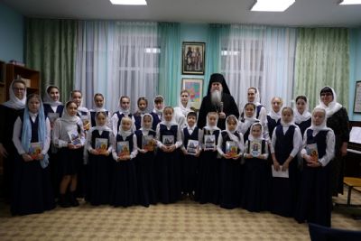Епископ Феофан благословил детей на дальнейшее пение в церковном хоре и вручил им памятные подарки.