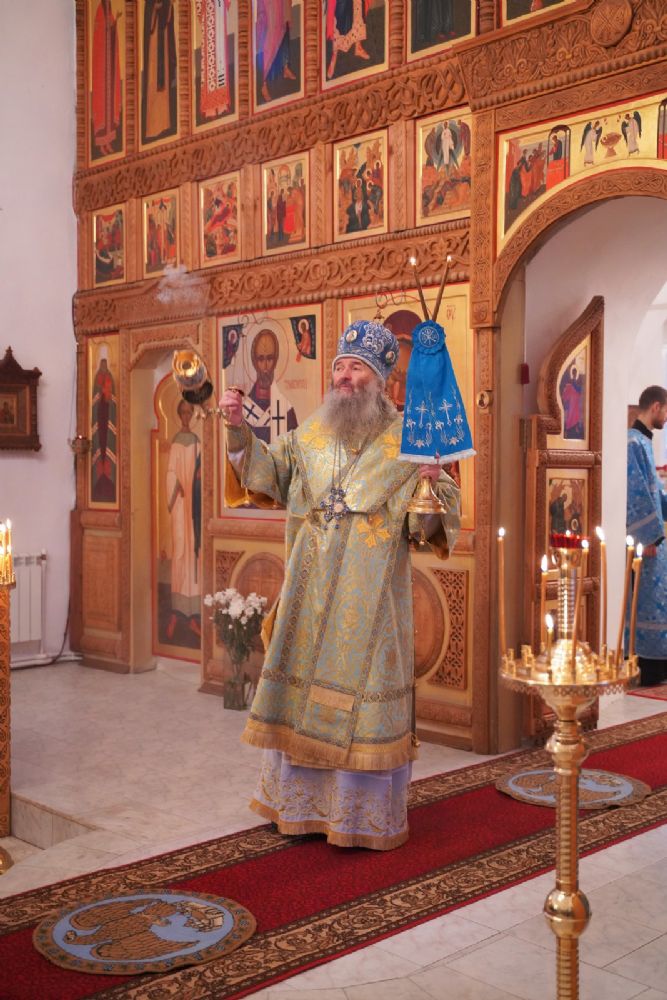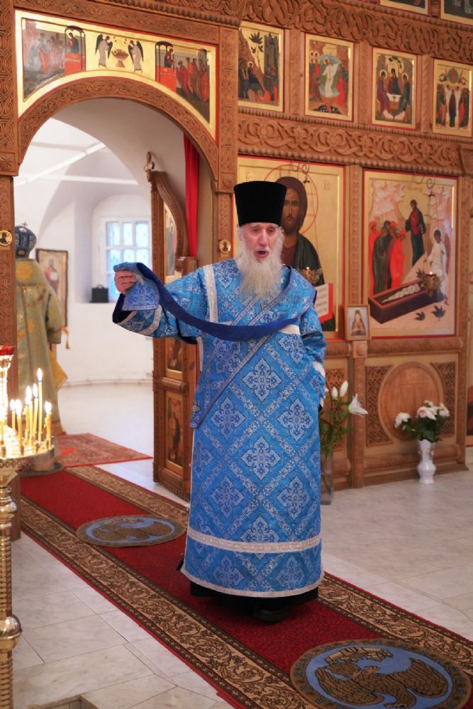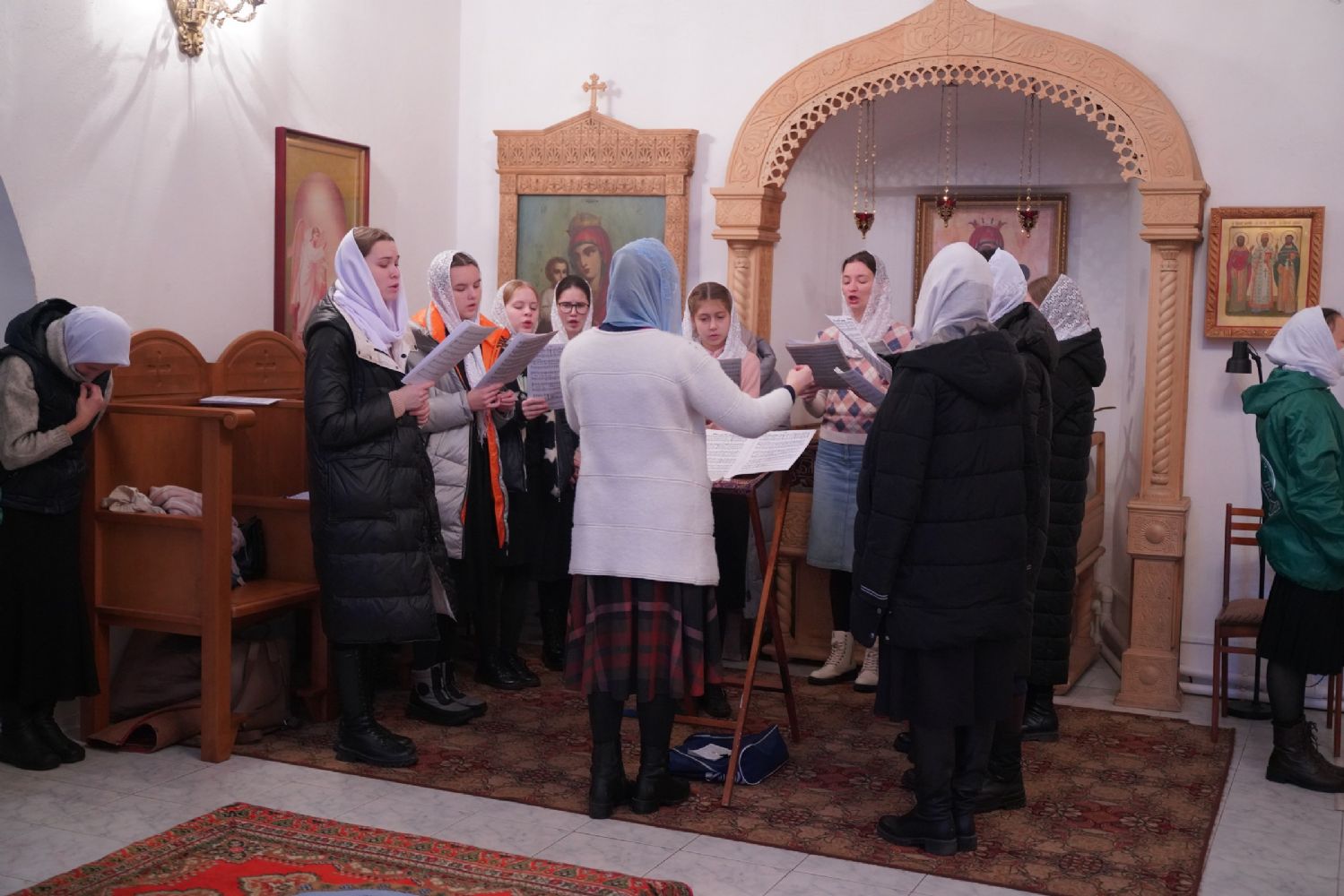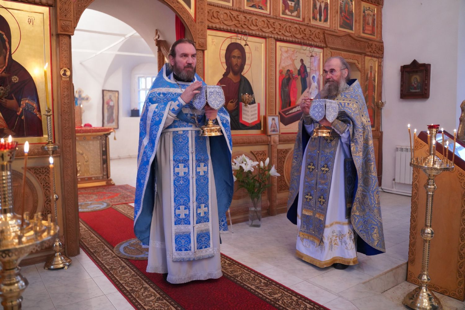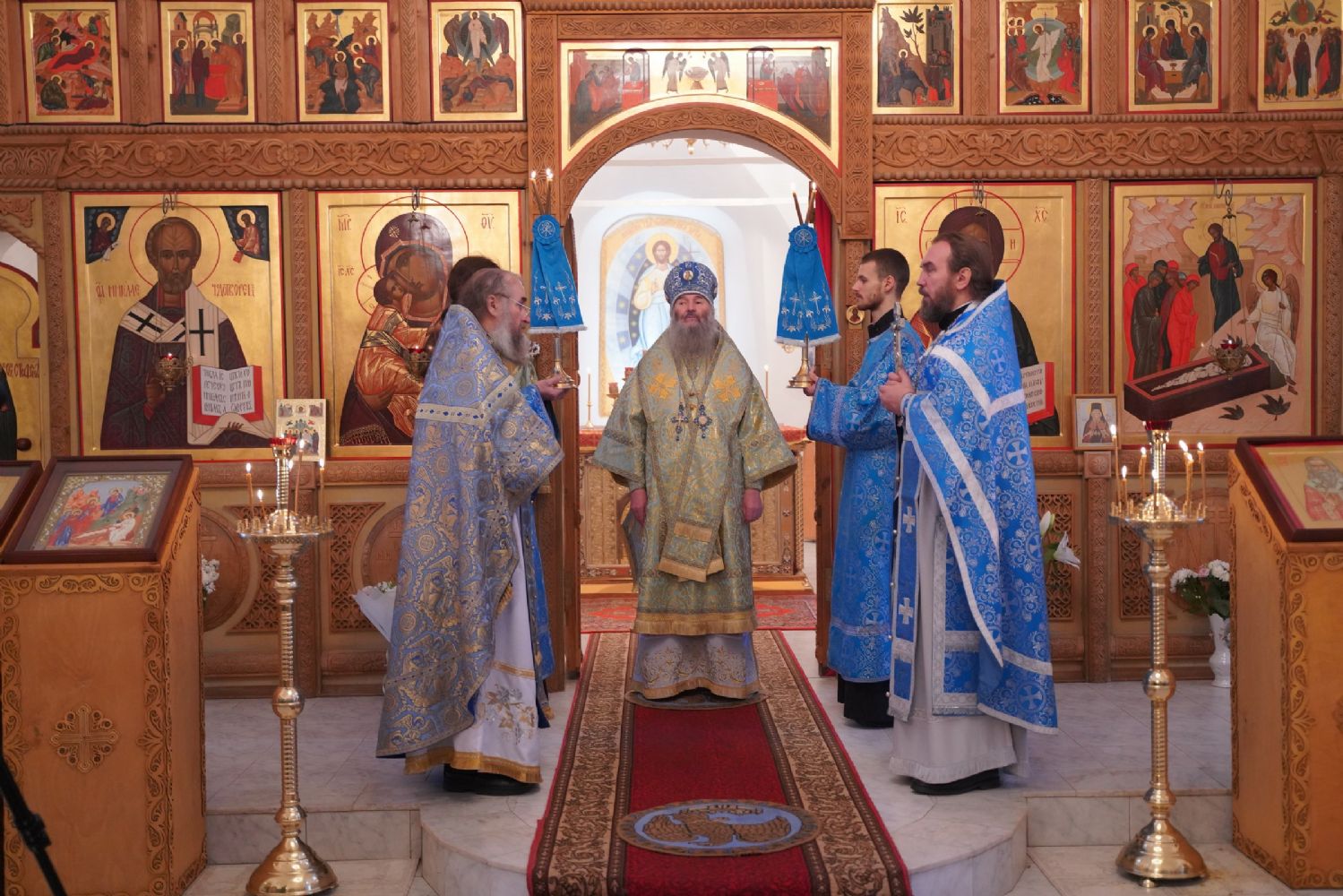 За Литургией архипастырю сослужили секретарь Йошкар-Олинского епархиального управления иеромонах Серафим (Пасанаев), клирик монастыря иерей Михаил Лежнин и протодиакон Михаил Козловский. Песнопения исполнял детско-юношеский хор «Благовест» под руководством регента Татьяны Черновой.