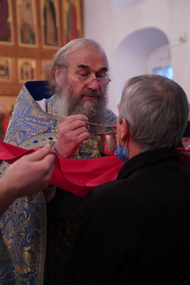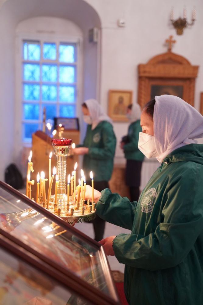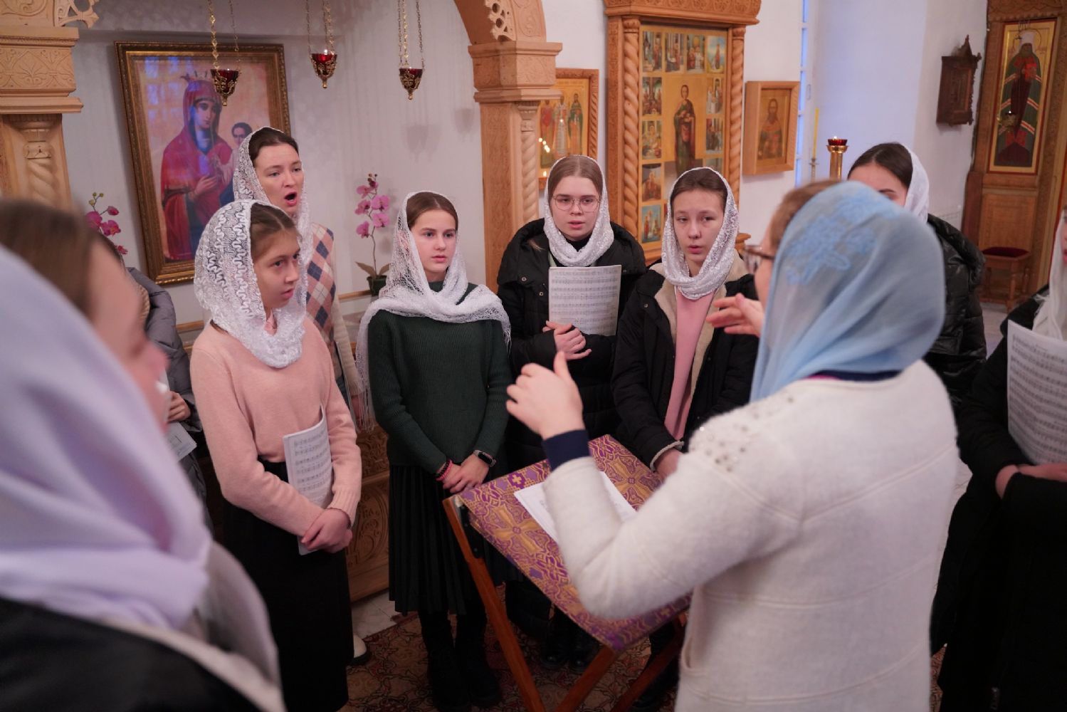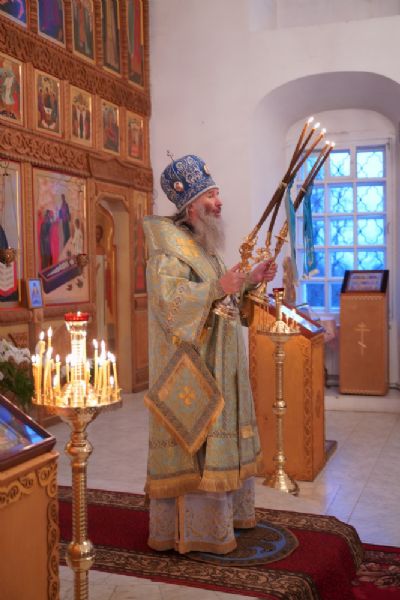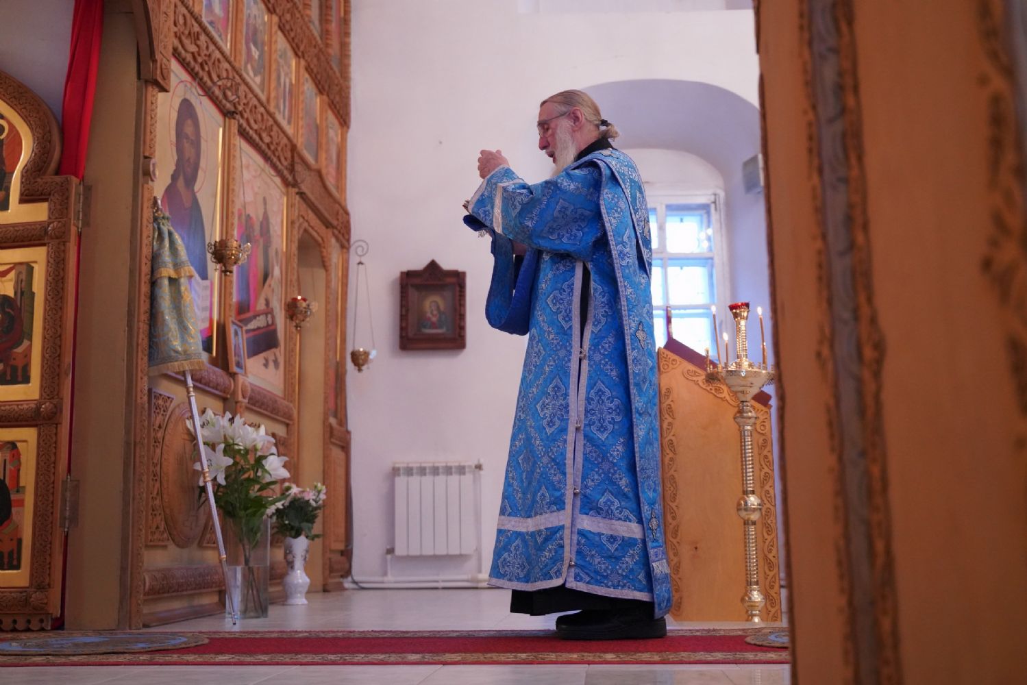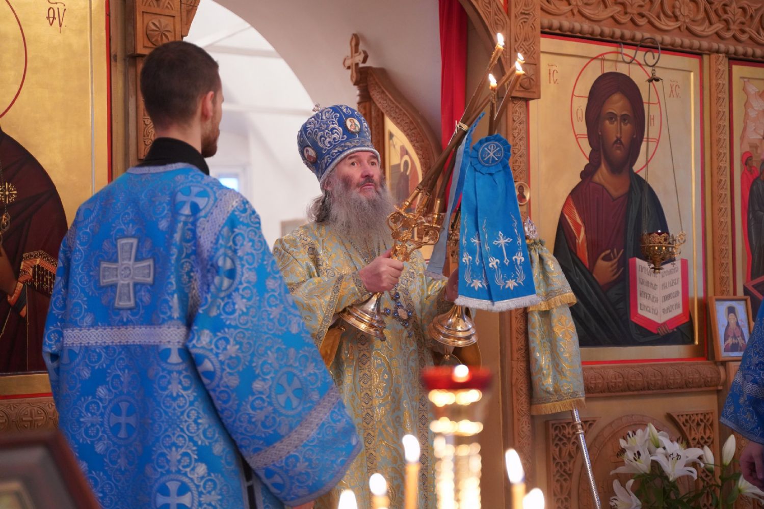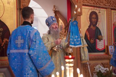 За Литургией архипастырю сослужили секретарь Йошкар-Олинского епархиального управления иеромонах Серафим (Пасанаев), клирик монастыря иерей Михаил Лежнин и протодиакон Михаил Козловский. Песнопения исполнял детско-юношеский хор «Благовест» под руководством регента Татьяны Черновой.