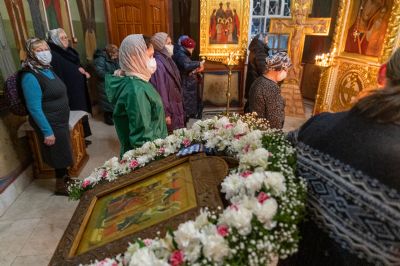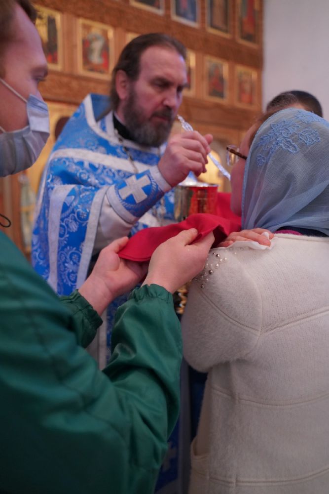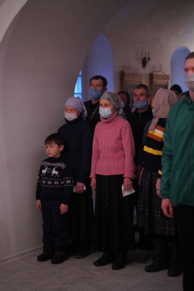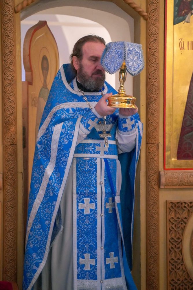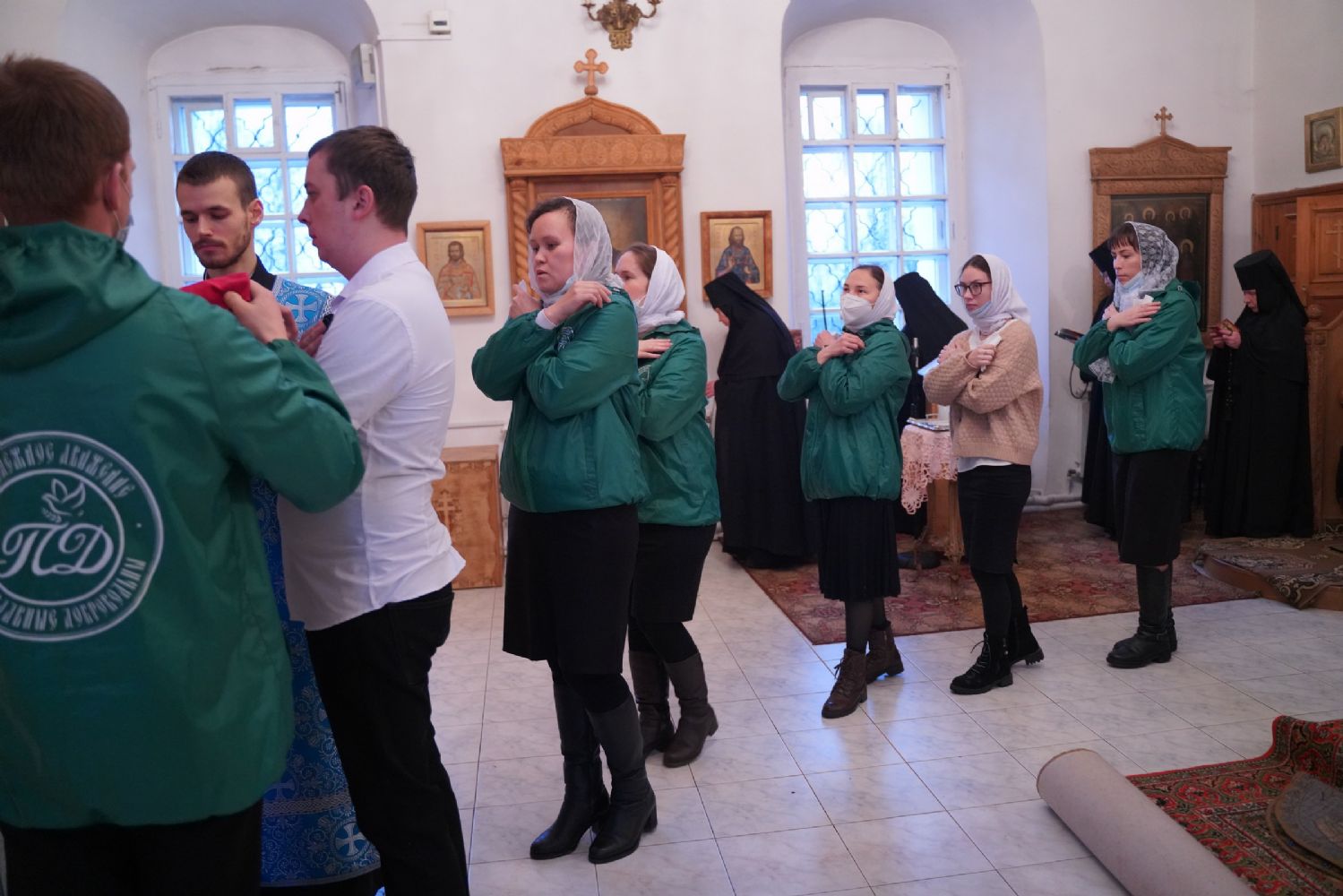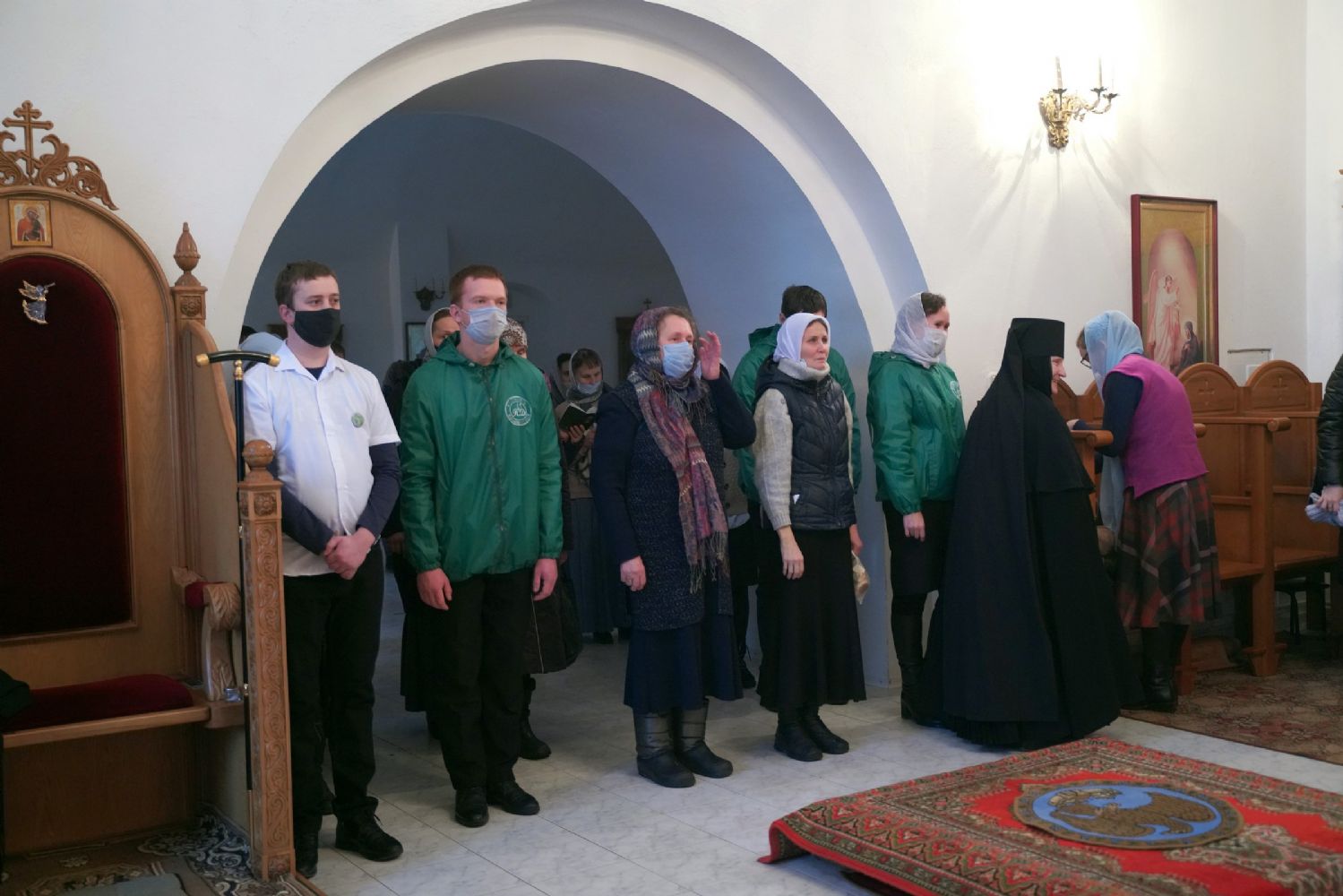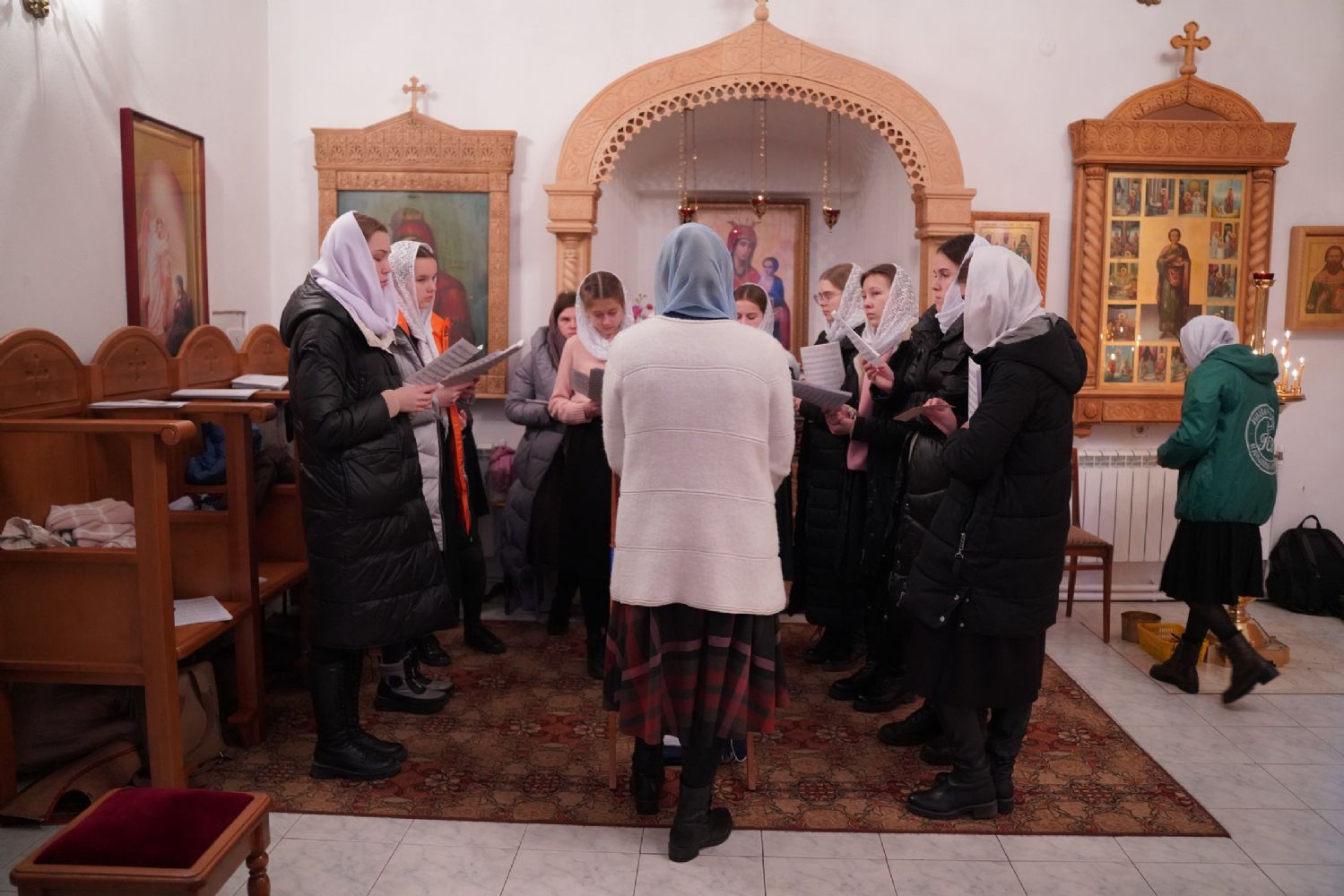 За Литургией архипастырю сослужили секретарь Йошкар-Олинского епархиального управления иеромонах Серафим (Пасанаев), клирик монастыря иерей Михаил Лежнин и протодиакон Михаил Козловский. Песнопения исполнял детско-юношеский хор «Благовест» под руководством регента Татьяны Черновой.