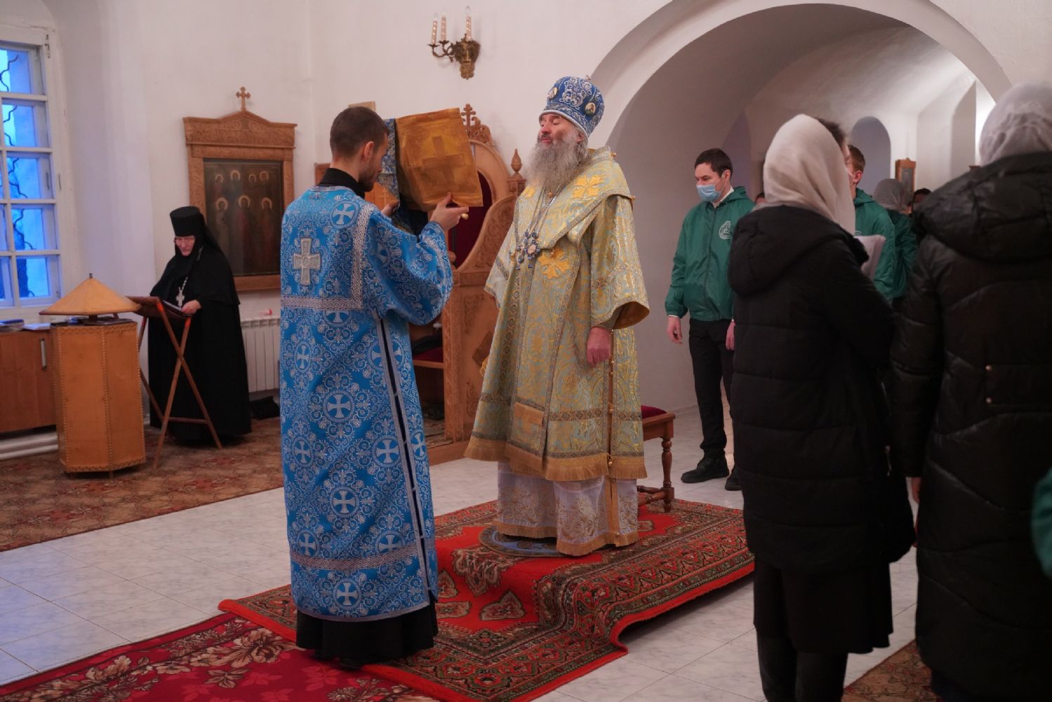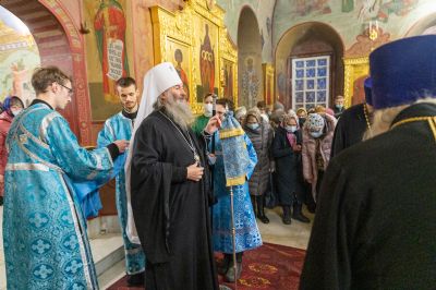 Митрополит Иоанн поздравил всех с престольным праздником Мироносицкого монастыря – домовый храм в честь Введения во храм Пресвятой Богородицы, первый восстановленный в Ежовской обители, был освящен в 1993 году.